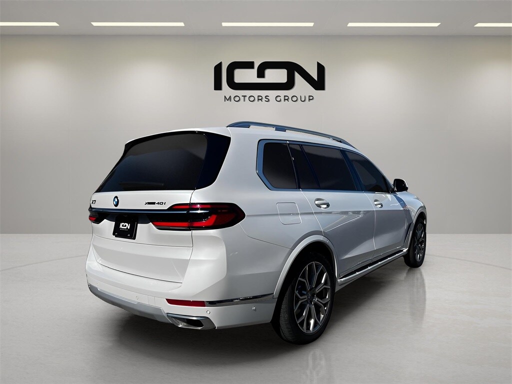 Icon Motors Group is built on over 15 years of automotive excellence, backed by the trust of more than 1,500 satisfied customers, and with a stellar 4.8/5 Google rating. With a diverse selection of over 300 quality vehicles across two convenient locations, we??ve proudly delivered more than 15,000 units, establishing a reputation for exceptional service, reliability, and value. Please note that the PRICE listed for this vehicle includes a $1,000 trade-in assistance discount, which is only applicable if you have a qualifying trade-in vehicle (a vehicle that is 10 years old or newer and has less than 100,000 miles). If you do not have a qualifying trade-in, the final price will be $1,000 higher. Additional fees for tax, title, registration, and a documentation fee of $799 are not included in the ICON price. Please contact us for the most up-to-date pricing and information. 2024 BMW X7 White xDrive40i AWD 8-Speed Automatic Sport 3.0L I6 DOHC 24V