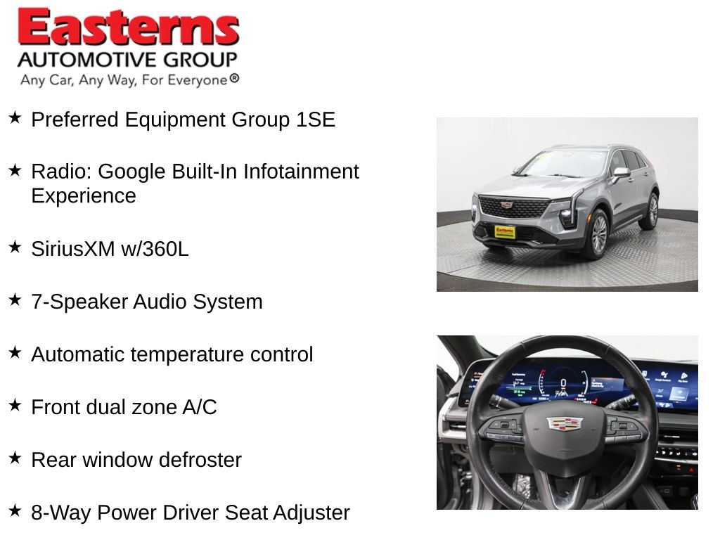 2024 Cadillac XT4 Premium Luxury Argent Silver Metallic AWD 9-Speed Automatic 4-Way Driver Seat Power Lumbar Control, 4-Way Passenger Seat Power Lumbar Control, 6-Way Power Passenger Seat Adjuster, 7-Speaker Audio System, 8-Way Power Driver Seat Adjuster, Apple CarPlay/Android Auto, Auto-Dimming Inside Rear-View Mirror, Automatic Emergency Braking, Automatic temperature control, Brake assist, Electronic Cruise Control w/Set & Resume Speed, Front dual zone A/C, Garage door transmitter, HD Rear Vision Camera, Heated door mirrors, Leather Seating Surfaces, Manual Rake & Telescopic Steering Column, Memory seat, Power door mirrors, Power Liftgate, Preferred Equipment Group 1SE, Radio: Google Built-In Infotainment Experience, Rain sensing wipers, Rear window defroster, Rear window wiper, Remote keyless entry, SiriusXM w/360L, Split folding rear seat, Wheels: 18 Tri 5-Spoke Pearl Nickel Finish Alloy, Wireless Apple CarPlay/Wireless Android Auto.CARFAX One-Owner. 23/28 City/Highway MPGEasterns Automotive Group has 11 locations that has sold thousands of used cars in the Maryland, DC, and Virginia communities for over the past 35 years. Every Easterns vehicle has passed a rigorous Multi-Point Quality Certification, so you can buy with confidence. Start your purchase online to save time by visiting Easterns.com... Any Car, Any Way, For Everyone.
