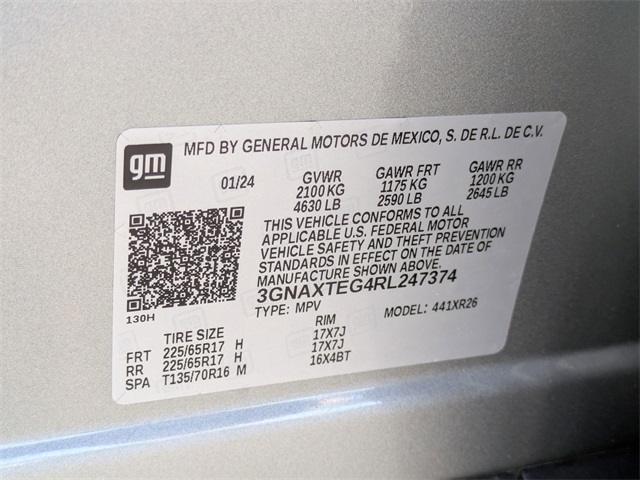 2024 Chevrolet Equinox LT Sterling Gray Metallic CARFAX One-Owner.Priced below KBB Fair Purchase Price! 24/30 City/Highway MPGWHY BUY FROM CARite of COCOA:-No haggle Pricing-Easy Finance Options-100% Customer Satisfaction Guarantee-High Quality Vehicles-FREE Full Vehicle History Report-NON COMMISSION SALES STAFF (Fixed commissions put their best interests in line with yours, so they can focus on helping YOU find the car that best fits YOUR needs.)Equipped with Driver Convenience Package (Dual-Zone Automatic Climate Control, Heated Driver & Front Passenger Seats, Rear Power Liftgate, Remote Start, and Wrapped Steering Wheel), Preferred Equipment Group 2FL, 17 Aluminum Wheels, 2 Rear USB Charging-Only Ports, 2 USB Ports & Auxiliary Input Jack, 2-Way Power Driver Lumbar Control Seat Adjuster, 3.87 Final Drive Axle Ratio, 4-Wheel Disc Brakes, 6 Speakers, 6-Speaker Audio System Feature, ABS brakes, Air Conditioning, Alloy wheels, AM/FM radio: SiriusXM, Auto High-beam Headlights, Bluetooth For Phone, Brake assist, Bumpers: body-color, Compass, Delay-off headlights, Driver 8-Way Power Seat Adjuster, Driver door bin, Driver vanity mirror, Dual front impact airbags, Dual front side impact airbags, Electronic Stability Control, Emergency communication system: OnStar and Chevrolet connected services capable, Four wheel independent suspension, Front anti-roll bar, Front Bucket Seats, Front Center Armrest, Front Passenger 4-Way Manual Seat Adjuster, Front reading lights, Fully automatic headlights, Heated door mirrors, Illuminated entry, Low tire pressure warning, Occupant sensing airbag, Outside temperature display, Overhead airbag, Overhead console, Panic alarm, Passenger door bin, Passenger vanity mirror, Power door mirrors, Power driver seat, Power steering, Power windows, Premium audio system: Chevrolet Infotainment 3, Premium Cloth Seat Trim, Radio data system, Radio: Chevrolet Infotainment 3 System w/AM/FM, Rear anti-roll bar, Rear reading lights, Rear seat center armrest, Rear window defroster, Rear window wiper, Remote keyless entry, Security system, SiriusXM, Speed control, Speed-sensing steering, Split folding rear seat, Spoiler, Steering wheel mounted audio controls, Tachometer, Telescoping steering wheel, Tilt steering wheel, Traction control, Trip computer, and Variably intermittent wipers Visit Us at www.CARite.com then CARite of Cocoa to view more pictures. Call Us Today At 321-877-1000 To Schedule Your V.I.P Appointment!.