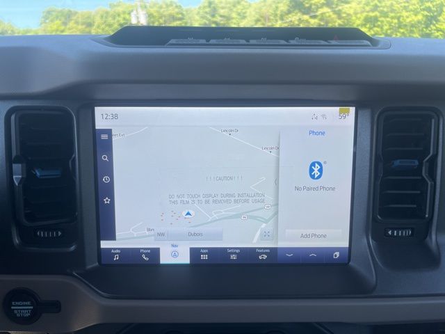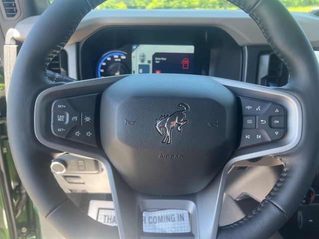 All new vehicles are backed by the Spitzer Shield and include a complimentary LIFETIME powertrain warranty!Eruption Green Metallic 2024 Ford Bronco Wildtrak 4WD 10-Speed Automatic 2.7L EcoBoost V6 4-Wheel Disc Brakes, Auto High-beam Headlights, Brake assist, Compass, Connected Navigation, Delay-off headlights, Dual front side impact airbags, Electronic Stability Control, Emergency communication system: 911 Assist, Equipment Group 352A Mid Package, Exterior Parking Camera Rear, Front & Rear Floor Liners w/o Carpet Floor Mats, Front dual zone A/C, Front reading lights, Front wheel independent suspension, Fully automatic headlights, Heated door mirrors, Heated front seats, Heated Leather-Trimmed/Vinyl Bucket Seats, Illuminated entry, Leather Shift Knob, Low tire pressure warning, Navigation system: Connected Navigation, Occupant sensing airbag, Outside temperature display, Overhead airbag, Panic alarm, Power steering, Power windows, Radio: 7 Speakers w/Subwoofer, Security system, SiriusXM Radio w/360L, Steering wheel mounted audio controls, SYNC 4, Tachometer, Traction control, Wheels: 17 Black High Gloss-Painted Aluminum.