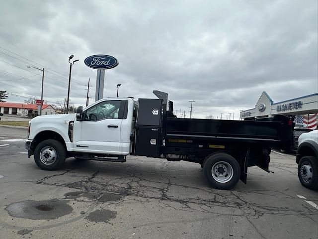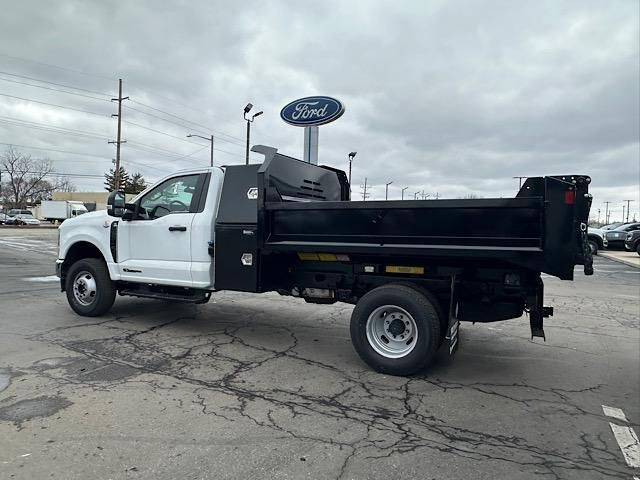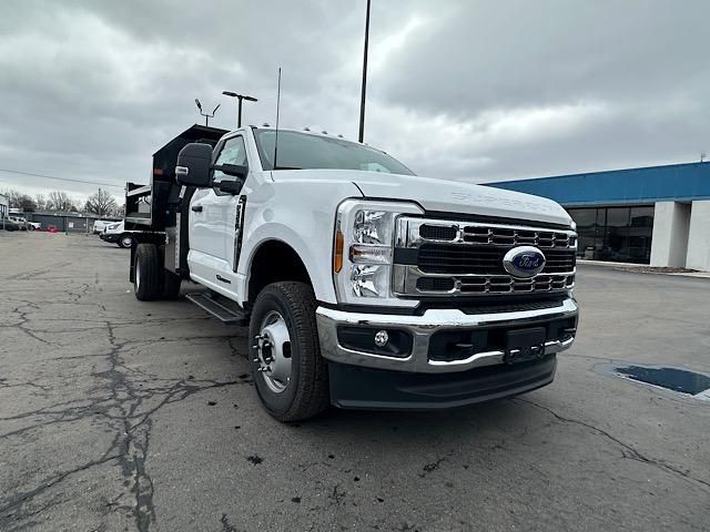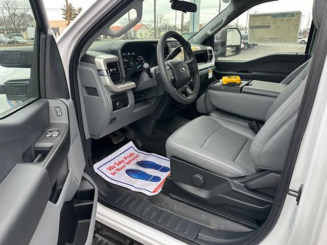 Oxford White 2024 Ford F-350SD XL 169 WB 2D Standard Cab 4WD 10-Speed Automatic Power Stroke 6.7L V8 DI 32V OHV Turbodiesel4WD, 120V/400W Outlet, 17 Argent Painted Steel Wheels, 4 Speakers, 4-Ton Hydraulic Jack, 4-Wheel Disc Brakes, 410 Amp Dual Alternators, ABS brakes, Air Conditioning, AM/FM radio, AM/FM Stereo w/MP3 Player, Brake assist, Bright Grille, Chrome Front Bumper, Compass, Delay-off headlights, Dual 68 AH/65 AGM Battery, Dual front impact airbags, Dual front side impact airbags, Dual rear wheels, Emergency communication system: SYNC 4 911 Assist, Engine Block Heater, Front anti-roll bar, Front Center Armrest w/Storage, Front License Plate Bracket, Front reading lights, Fully automatic headlights, GVWR: 14,000 lb Payload Package, Halogen Fog Lamps, HD Vinyl 40/20/40 Split Bench Seat, Heated door mirrors, Illuminated entry, Limited Slip w/4.10 Axle Ratio, Low tire pressure warning, Order Code 640A, Outside temperature display, Overhead airbag, Overhead console, Panic alarm, Passenger cancellable airbag, Passenger vanity mirror, Platform Running Boards, Power door mirrors, Power steering, Power windows, Rear anti-roll bar, Rear View Camera & Prep Kit, Remote keyless entry, Remote Start, Snow Plow Prep Package, Speed control, Steering wheel mounted audio controls, SYNC 4 Communications & Entertainment System, Tachometer, Telescoping steering wheel, Tilt steering wheel, Traction control, Trip computer, Turn signal indicator mirrors, Variably intermittent wipers, XL Chrome Package, 4WD.