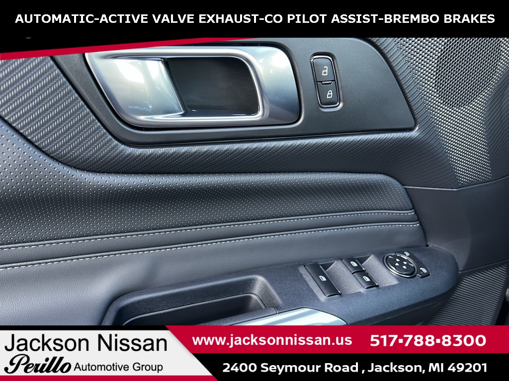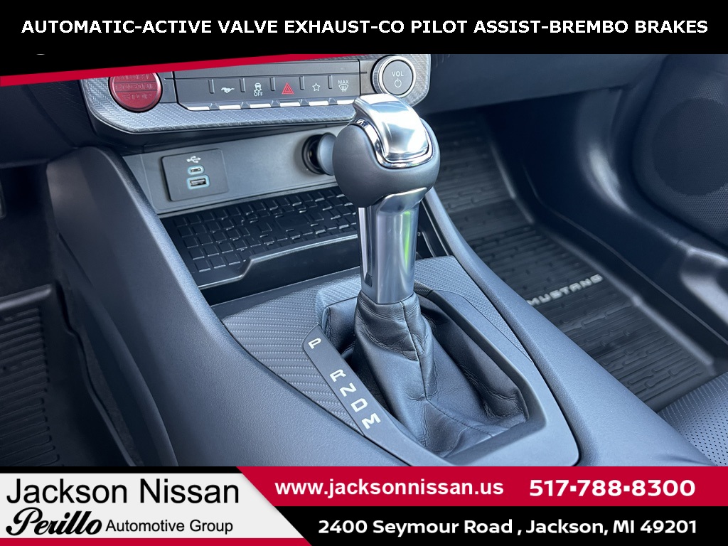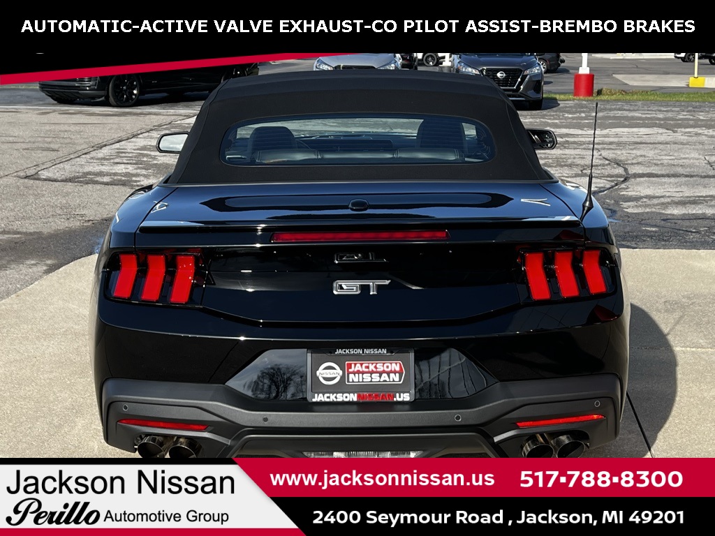 New Price! 2024 Ford Mustang GT Premium Shadow Black Price Drop, Call Today 517-788-8300, NAVIGATION, LEATHER, BLUETOOTH, BACKUP CAMERA, Excellent Interior, Must See!, Excellent Condition, Fully Detailed, One Owner, All Regular Scheduled Maintenance Performed, Pristine Condition, Low Miles!, Clean Carfax, Under Manufacture Warranty, REMOTE START, ANDROID AUTO / APPLE CARPLAY, BLIND SPOT WARNING, PROPILOT ASSIST, LANE DEPARTURE WARNING, 4-Wheel Disc Brakes, 9 Speakers, ABS brakes, Active Anti-Theft System, Active Valve Performance Exhaust, Air Conditioning, AM/FM radio: SiriusXM with 360L, AM/FM Stereo, Auto High-beam Headlights, Auto-dimming Rear-View mirror, Automatic temperature control, B&O Sound System by Bang & Olufsen, Brake assist, Bumpers: body-color, Climate Controlled Heated/Cooled Front Seats, Compass, Connected Built-In Navigation, Convertible roof lining, Delay-off headlights, Driver door bin, Driver vanity mirror, Dual front impact airbags, Dual front side impact airbags, Electronic Stability Control, Emergency communication system: 911 Assist, Equipment Group 400A Standard Package, Exterior Parking Camera Rear, Ford Co-Pilot360 Assist+, Four wheel independent suspension, Front anti-roll bar, Front Bucket Seats, Front Center Armrest, Front dual zone A/C, Front reading lights, Fully automatic headlights, Garage door transmitter, Glass rear window, HD Radio, Heated door mirrors, Heated front seats, Heated steering wheel, Illuminated entry, Knee airbag, Leather Shift Knob, Leather steering wheel, Leather-Trimmed Bucket Seats, Locking Center Console, Low tire pressure warning, Navigation System, Occupant sensing airbag, Outside temperature display, Overhead console, Panic alarm, Passenger door bin, Passenger vanity mirror, Power convertible roof, Power door mirrors, Power driver seat, Power passenger seat, Power steering, Power windows, Pre-Collision Assist w/Automatic Emergency Braking, Radio data system, Rain sensing wipers, Rear anti-roll bar, Rear Parking Sensors, Rear window defroster, Red Painted Brake Calipers w/White Logo, Remote keyless entry, Security Package, Security system, SiriusXM w/360L, Speed control, Speed-sensing steering, Speed-Sensitive Wipers, Spoiler, Sport steering wheel, Steering wheel mounted audio controls, SYNC 4.0 QNX, Tachometer, Telescoping steering wheel, Tilt steering wheel, Traction control, Trip computer, Turn signal indicator mirrors, Variably intermittent wipers, Ventilated front seats, Voltmeter, Wheel Locking Kit, Wheels: 19 x 8.5 Shadow Silver-Painted Aluminum.15/23 City/Highway MPGAt Jackson Nissan, our goal is to exceed your expectations at all times. The moment you walk into our showroom, we intend to help you find a car you'll love. Now Take A Look What We Just Got In! * All new and or pre-owned vehicles advertised prices are subject to well qualified buyers with all applicable incentives, rebates and or dealer cash with approved credit through dealer lending. See dealer for additional details.