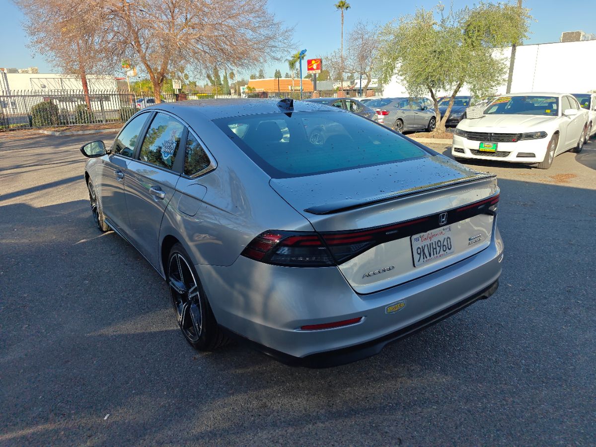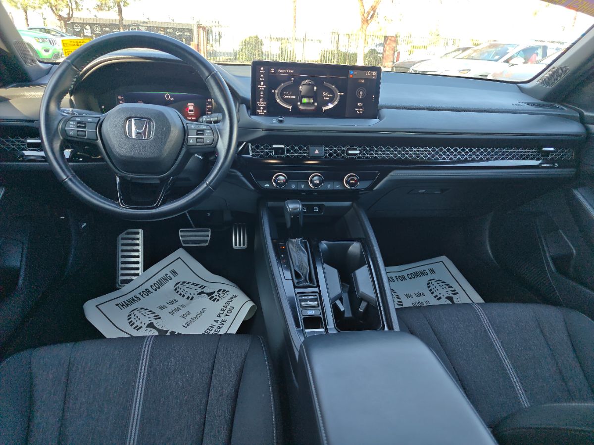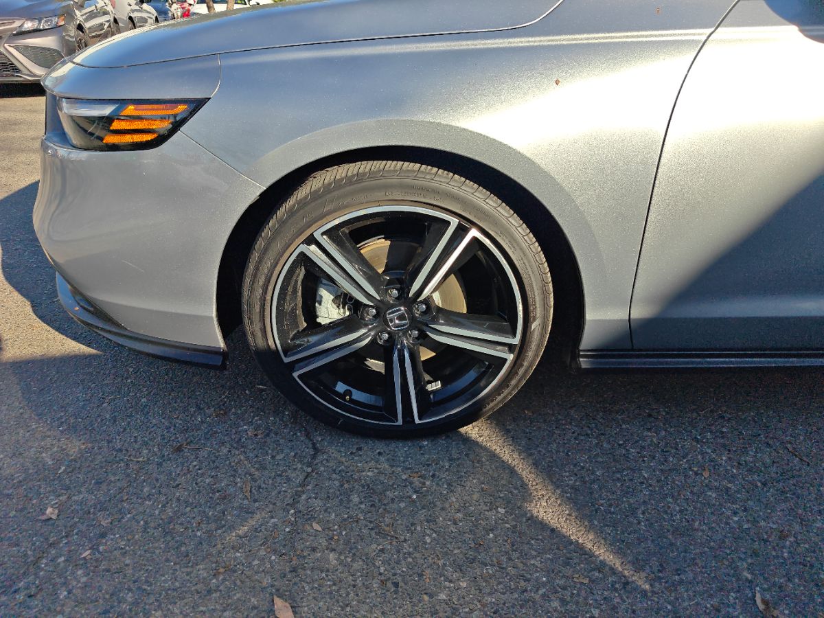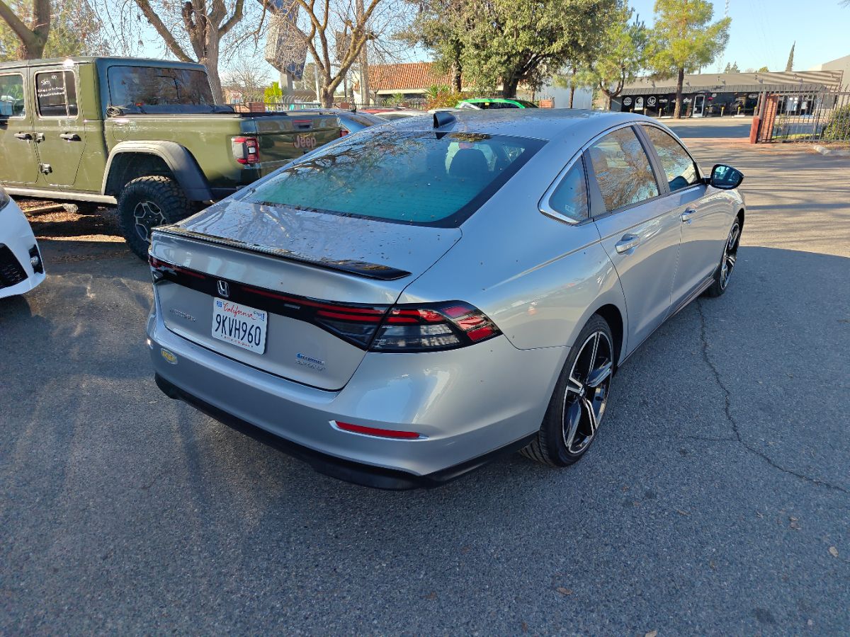 Our one owner 2024 Honda Accord Sport Hybrid Sedan with low miles can enhance performance, efficiency, and style in Solar Silver Metallic! Powered by 2.0 Liter 4 Cylinder and 2 Electric Motors offering a combined 204hp to an eCVT with Sport and Individual Modes. A Motion Management System is standard for comfortable cornering, and this Front Wheel Drive sedan sees nearly 46mpg in the city. Designed for an adrenaline rush, our Accord delivers with a gloss-black rear spoiler, matching side sills, 19-inch alloy wheels, a power sunroof, and LED lighting. Honda has a winner with this one! Top-shelf amenities await in our terrific Sport Hybrid cabin. It helps you travel in dynamic comfort with supportive cloth front seats, 10-way power for the driver, a leather-wrapped steering wheel, dual-zone automatic climate control, sport pedals, and keyless access/ignition. Activate the infotainment system to enjoy a 12.3-inch touchscreen, a 10.2-inch driver display, Alexa Built-in, wireless Apple CarPlay/Android Auto, WiFi compatibility, Bluetooth, and eight-speaker audio. Honda helps you prepare for the road ahead by providing automatic braking, adaptive cruise control, blind-spot monitoring, lane-keeping assistance, a multi-angle rearview camera, forward collision warning, and more. A popular choice for demanding owners, our Accord Sport Hybrid puts your needs first! Save this Page and Call for Availability. We Know You Will Enjoy Your Test Drive Towards Ownership!