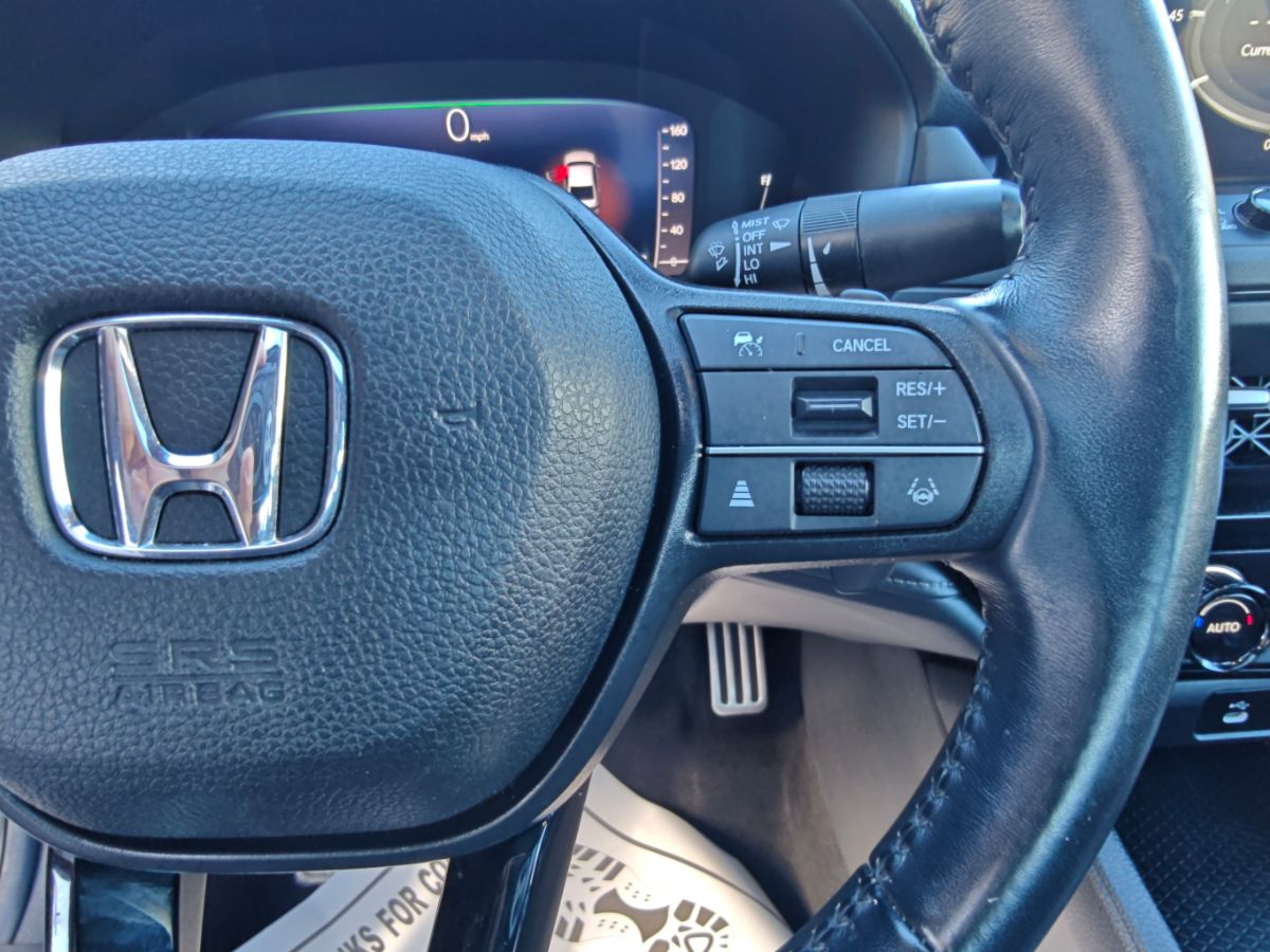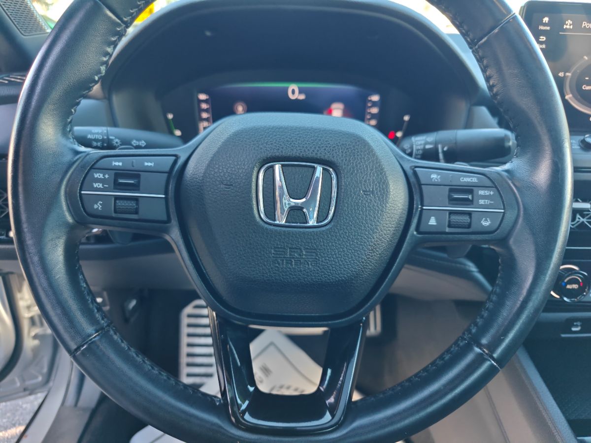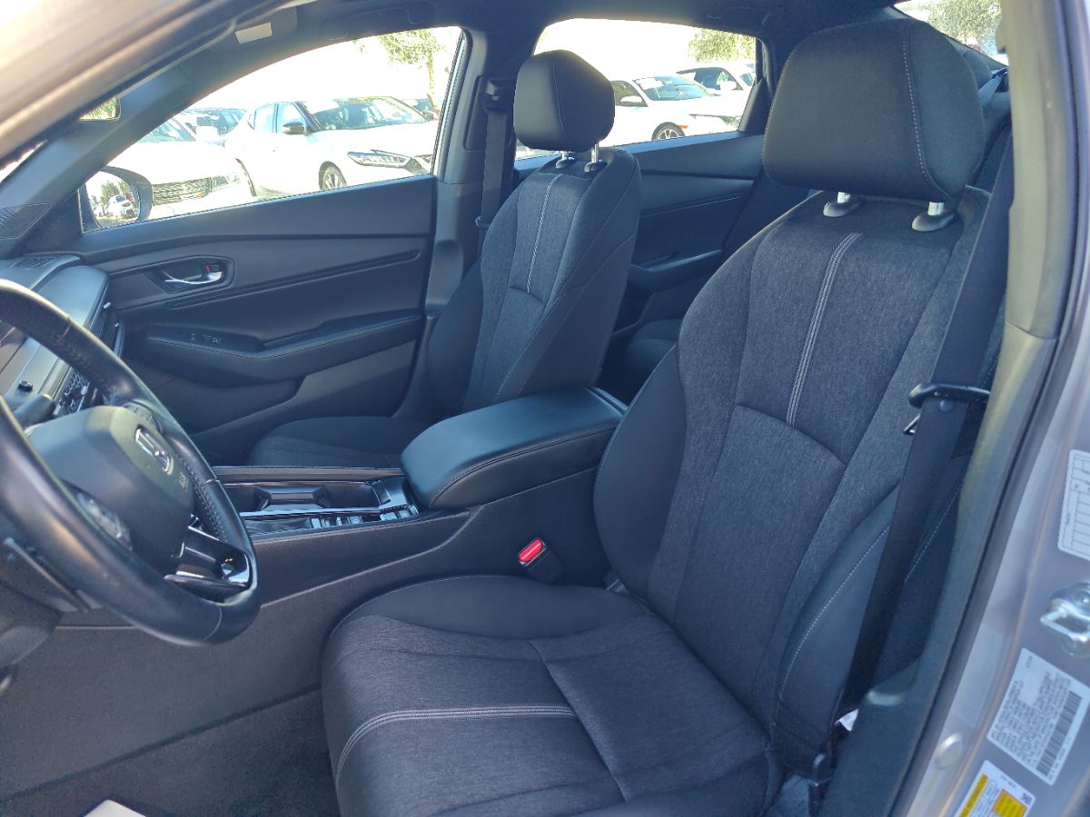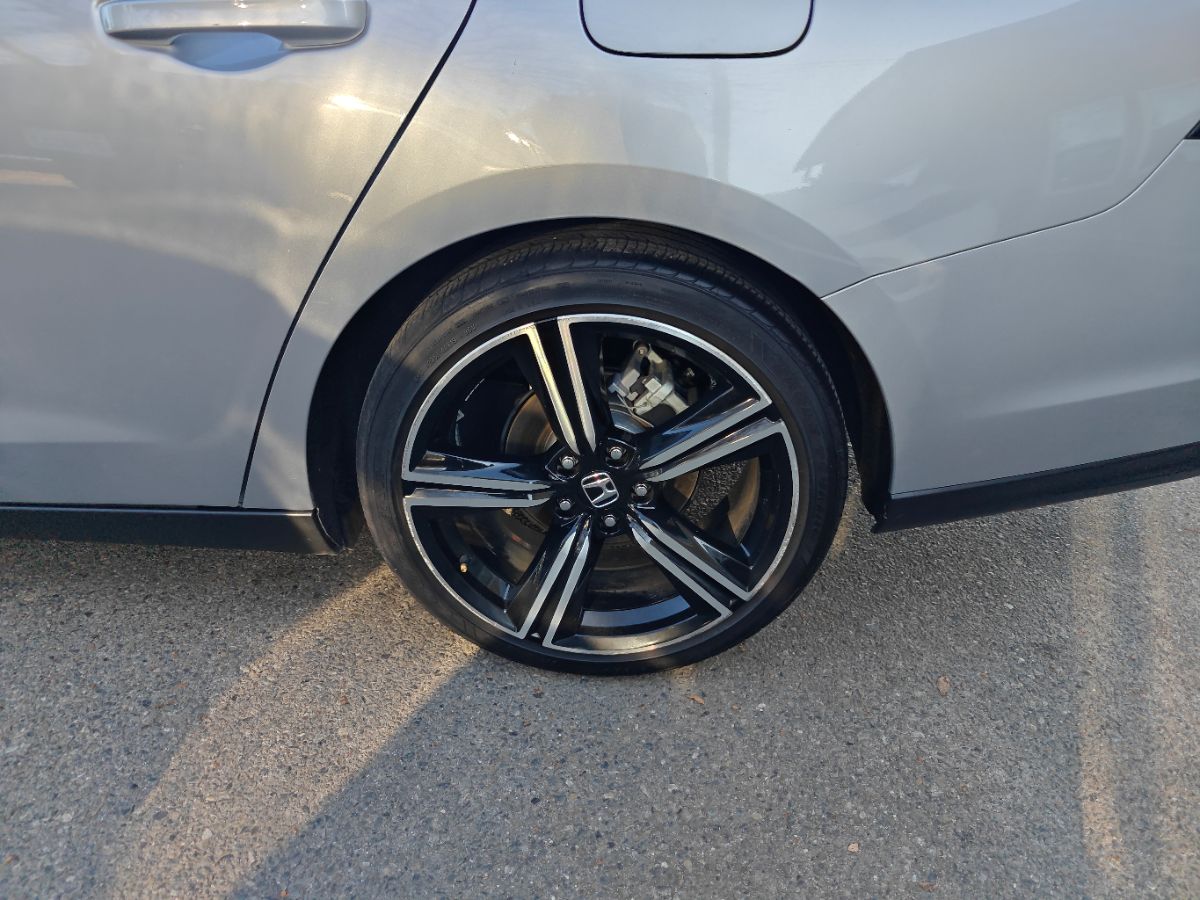 Our one owner 2024 Honda Accord Sport Hybrid Sedan with low miles can enhance performance, efficiency, and style in Solar Silver Metallic! Powered by 2.0 Liter 4 Cylinder and 2 Electric Motors offering a combined 204hp to an eCVT with Sport and Individual Modes. A Motion Management System is standard for comfortable cornering, and this Front Wheel Drive sedan sees nearly 46mpg in the city. Designed for an adrenaline rush, our Accord delivers with a gloss-black rear spoiler, matching side sills, 19-inch alloy wheels, a power sunroof, and LED lighting. Honda has a winner with this one! Top-shelf amenities await in our terrific Sport Hybrid cabin. It helps you travel in dynamic comfort with supportive cloth front seats, 10-way power for the driver, a leather-wrapped steering wheel, dual-zone automatic climate control, sport pedals, and keyless access/ignition. Activate the infotainment system to enjoy a 12.3-inch touchscreen, a 10.2-inch driver display, Alexa Built-in, wireless Apple CarPlay/Android Auto, WiFi compatibility, Bluetooth, and eight-speaker audio. Honda helps you prepare for the road ahead by providing automatic braking, adaptive cruise control, blind-spot monitoring, lane-keeping assistance, a multi-angle rearview camera, forward collision warning, and more. A popular choice for demanding owners, our Accord Sport Hybrid puts your needs first! Save this Page and Call for Availability. We Know You Will Enjoy Your Test Drive Towards Ownership!