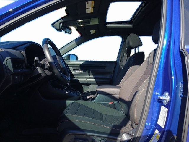 4-Wheel Disc Brakes, 4.438 Axle Ratio, 6 Speakers, ABS brakes, Adaptive Cruise Control: Adaptive Cruise Control (ACC) with Low-Speed Follow, Air Conditioning, Alloy wheels, Apple CarPlay/Android Auto, Auto High-beam Headlights, Automatic temperature control, Blind Spot Information (BSI) System warning, Brake assist, Bumpers: body-color, Cloth Seat Trim, Compass, Delay-off headlights, Driver door bin, Driver vanity mirror, Dual front impact airbags, Dual front side impact airbags, Electronic Stability Control, Exterior Parking Camera Rear, Four wheel independent suspension, Front anti-roll bar, Front Bucket Seats, Front Center Armrest, Front dual zone A/C, Front reading lights, Fully automatic headlights, Heated door mirrors, Heated Front Bucket Seats, Heated front seats, Illuminated entry, Knee airbag, Leather Shift Knob, Leather steering wheel, Low tire pressure warning, Occupant sensing airbag, Outside temperature display, Overhead airbag, Overhead console, Panic alarm, Passenger door bin, Passenger vanity mirror, Power door mirrors, Power driver seat, Power moonroof, Power steering, Power windows, Radio data system, Radio: 240-Watt AM/FM Audio System, Rear anti-roll bar, Rear reading lights, Rear seat center armrest, Rear side impact airbag, Rear window defroster, Rear window wiper, Remote keyless entry, Security system, Speed control, Speed-sensing steering, Speed-Sensitive Wipers, Split folding rear seat, Spoiler, Steering wheel mounted audio controls, Telescoping steering wheel, Tilt steering wheel, Traction control, Trip computer, Turn signal indicator mirrors, Variably intermittent wipers, Wheels: 18 Berlina Black Alloy. New Price!Blue 2024 Honda CR-V Hybrid Sport FWD eCVT 2.0L I4 DOHC 16V43/36 City/Highway MPG