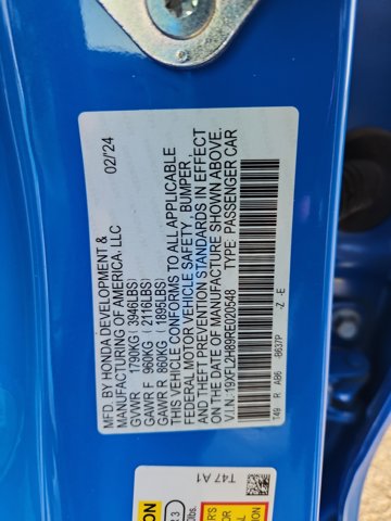 Its so easy at Honda of Greeley!2024 Honda Civic Sport Boost Blue Pearl Sport FWD 2.0L I4 DOHC 16V CVTHondaTrue Certified Certified, Black w/Cloth/Leatherette Seating Surfaces, 18 Alloy Wheels, 4-Wheel Disc Brakes, 8 Speakers, ABS brakes, Adaptive Cruise Control: Adaptive Cruise Control (ACC) with Low-Speed Follow, Air Conditioning, Alloy wheels, AM/FM radio, Apple CarPlay/Android Auto, Auto High-beam Headlights, Automatic temperature control, Brake assist, Bumpers: body-color, Cloth/Leatherette Seating Surfaces, Delay-off headlights, Driver door bin, Driver vanity mirror, Dual front impact airbags, Dual front side impact airbags, Electronic Stability Control, Emergency communication system: HondaLink, Exterior Parking Camera Rear, Four wheel independent suspension, Front anti-roll bar, Front Bucket Seats, Front Center Armrest, Front reading lights, Fully automatic headlights, Illuminated entry, Knee airbag, Lane departure: Lane Keeping Assist System (LKAS) active, Leather Shift Knob, Leather steering wheel, Low tire pressure warning, Occupant sensing airbag, Outside temperature display, Overhead airbag, Panic alarm, Passenger door bin, Passenger vanity mirror, Power door mirrors, Power steering, Power windows, Radio data system, Radio: 180-Watt Audio System, Rear anti-roll bar, Rear side impact airbag, Rear window defroster, Rear window wiper, Remote keyless entry, Security system, Speed control, Speed-sensing steering, Split folding rear seat, Steering wheel mounted audio controls, Tachometer, Telescoping steering wheel, Tilt steering wheel, Traction control, Trip computer, Voltmeter, Black w/Cloth/Leatherette Seating Surfaces.29/37 City/Highway MPGCertified. HondaTrue Certified Details:* Limited Warranty: 24 Month/100,000 Mile (whichever comes first) after new car warranty expires or from certified purchase date* Transferable Warranty* Powertrain Limited Warranty: 84 Month/100,000 Mile (whichever comes first) from original in-service date* Vehicle History* Roadside Assistance* Warranty Deductible: $0* Vehicles purchased within New Vehicle Limited Warranty period: extends New Vehicle Limited Warranty to 5 years*/60,000 miles*. Honda Care Roadside Assistance for 2 year/100,000 miles (whichever occurs first). Up to two complimentary oil changes within the first year of ownership. SiriusXM 90-Day Trial.* 182 Point InspectionAll used car prices include dealer and handling charge of $798. Come to www.HondaofGreeley.com To See Our Specials!!! Call us at 970-506-2791 For help with anything we offer.