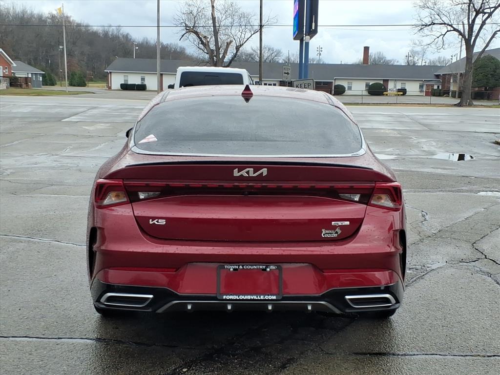 This vehicle is a Kia Sedan K5 GT-Line from 2024, with a 1.6 liter 4 cylinder engine and turbocharged power. It has a red exterior and 26,626 miles driven, and it has a crash test rating of 5 out of 5 stars. It also has features such as touch screen display, Bluetooth audio connection, blind spot sensor, hill start assist, Apple Carplay ready, navigation system with voice recognition, and navigation with touch screen display. This motorcar also has a fuel economy of 27 mpg in the city and 37 mpg on the highway, making it an efficient choice for drivers. Additionally, it has a black (wk) interior and comes with a crash test rating of 5 out of 5 stars. This carfax report is available for interested buyers to view. Contact Details: Town and Country Ford - Louisville, 6015 Preston Hwy, Louisville, KY, 40219, tbradley@tacford.com, (502) 964-8131.