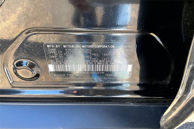 Certified. Black 2024 Mitsubishi Outlander Sport 2.0 LE 4WD CVT 2.0L I4 DOHC 16V LEV3-ULEV70 148hp 4WD.Mitsubishi Certified Pre-Owned Certified, 4WD, 4-Wheel Disc Brakes, 6.026 Axle Ratio, ABS brakes, Air Conditioning, Auto High-beam Headlights, Auto-dimming Rear-View mirror, Automatic temperature control, Brake assist, Bumpers: body-color, Delay-off headlights, Driver door bin, Driver vanity mirror, Dual front impact airbags, Dual front side impact airbags, Electronic Stability Control, Exterior Parking Camera Rear, Four wheel independent suspension, Front anti-roll bar, Front Bucket Seats, Front Center Armrest, Front reading lights, Fully automatic headlights, Heated door mirrors, Illuminated entry, Knee airbag, Low tire pressure warning, Occupant sensing airbag, Outside temperature display, Overhead airbag, Panic alarm, Passenger door bin, Passenger vanity mirror, Power door mirrors, Power steering, Power windows, Radio data system, Rain sensing wipers, Rear anti-roll bar, Rear seat center armrest, Rear window defroster, Rear window wiper, Remote keyless entry, Security system, Speed control, Speed-sensing steering, Split folding rear seat, Steering wheel mounted audio controls, Tachometer, Telescoping steering wheel, Tilt steering wheel, Traction control, Trip computer, and Variably intermittent wipers. Odometer is 1474 miles below market average! 23/29 City/Highway MPGMitsubishi Certified Pre-Owned Details: * Powertrain Limited Warranty: 120 Month/100,000 Mile (whichever comes first) from original in-service date * Roadside Assistance for 5 Years/Unlimited Mileage From Original In-Service Date * Warranty Deductible: $0 * Roadside Assistance * Vehicle History * Transferable Warranty * 123 Point Inspection
