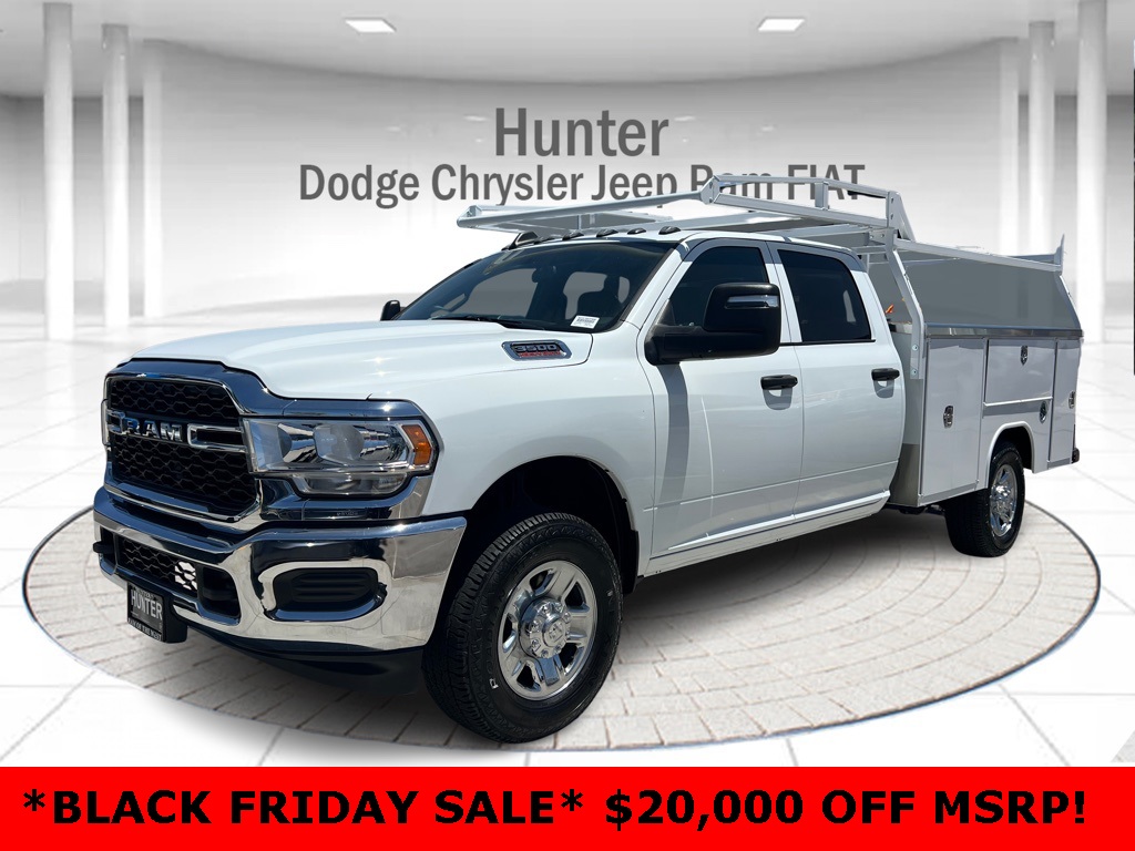 Bright White Clearcoat 2024 Ram 3500 Tradesman 4WD 8-Speed Automatic 6.4L V8 102 mph Maximum Speed, 4-Wheel Disc Brakes, 4.10 Axle Ratio, 40/20/40 Split Bench Seat, 6 Speakers, ABS brakes, Air Conditioning, Black Exterior Truck Badging, Black Key Fob, Bright Front Bumper, Bright Wheel Skins, Center Hub, Chrome Appearance Group, Chrome Grille Surround, Chrome Headlamp Bezels, Compass, Delay-off headlights, Door Sill Scuff Pads, Driver door bin, Dual front impact airbags, Electric Shift-On-The-Fly Transfer Case, Electronic Stability Control, Emergency communication system: SiriusXM Guardian, Engine Calibration Flash, For Details, Visit DriveUconnect.com, For More Info, Call 800-643-2112, Front anti-roll bar, Front Bucket Seats, Front License Plate Bracket, Fully automatic headlights, Global Telematics Box Module (TBM), Glove Box, GPS Antenna Input, Halogen Quad Headlamps, HD Vinyl 40/20/40 Split Bench Seat, Heated door mirrors, Integrated Voice Command w/Bluetooth, Manual Adjust 4-Way Driver Seat, Manual Adjust 4-Way Front Passenger Seat, Manufacturer's Statement of Origin, Map/Courtesy Lamp, Matte Black Grille Surround, Matte Black Mesh Grille w/Chrome, Occupant sensing airbag, Outside temperature display, Overhead Console, Overhead console, Overhead Cupholder Lamp, ParkView Rear Back-Up Camera, Passenger door bin, Passenger vanity mirror, Power door mirrors, Power steering, Power windows, Quick Order Package 2GA Tradesman, Radio data system, Radio: Uconnect 3 w/5 Display, Rear anti-roll bar, Rear Dome Lamp, Rear Folding Seat, Remote Keyless Entry, Remote USB Port - Charge Only, SiriusXM Radio Service, Speed control, Storage Tray, Tachometer, Temperature & Compass Gauge, Tilt steering wheel, Tow Hooks, Traction control, Trailer Brake Control, Trailer Light Check, Turn signal indicator mirrors, Variably intermittent wipers, Voltmeter, Wheels: 18 x 8.0 Steel, Wheels: 18 x 8 Steel Chrome Clad. Price includes: $1500 - 2024 National Stellantis Loyalty Bonus Cash . Exp. 01/05/2026 $3750 - 2024 Bonus Cash . Exp. 01/05/2026 Price includes $14,935 dealer added accessories.