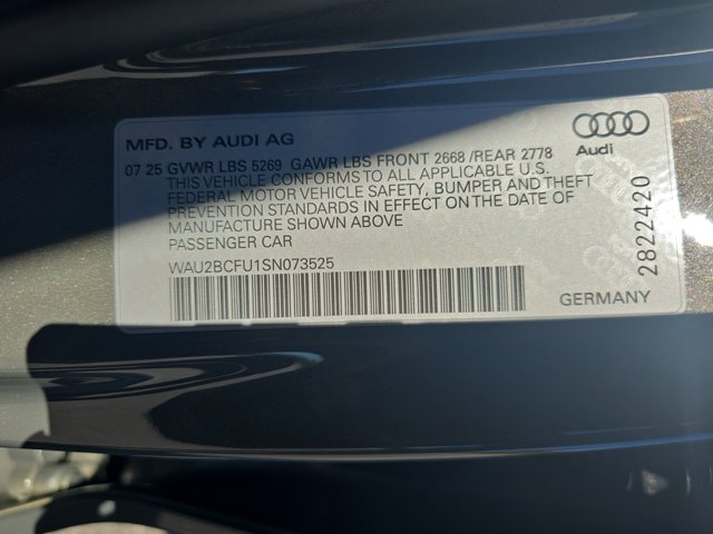 Gray 2025 Audi A5 2.0T Premium Plus quattro quattro 7-Speed Automatic S tronic 2.0L 4-Cylinder TFSI quattro, Brown Leather, 19 Wheel Package, ABS brakes, Adaptive Cruise Assist, Alloy wheels, Auto High-beam Headlights, Brown Applewood Natural Wood Inlays, Brown Warm Weather Package, Compass, Dynamic Interaction Light, Electronic Stability Control, Front Bucket Seats, Front Center Armrest, Front dual zone A/C, Garage door transmitter: HomeLink, Head-Up Display, Heated door mirrors, Heated Front Bucket Seats, Heated front seats, Illuminated entry, LED Interior Lighting Pro Package, Low tire pressure warning, Manual Rear Side Window Sunshades, Navigation System, Park Assist Plus, Power Liftgate, Power passenger seat, Premium Plus, Rain sensing wipers, Remote keyless entry, Split folding rear seat, Top View Camera System, Traction control, Wheels: 19 5-Arm-Aero Design Bi-Color Finish.22/31 City/Highway MPG Price includes: $2500 - Audi Credit. Exp. 03/02/2026