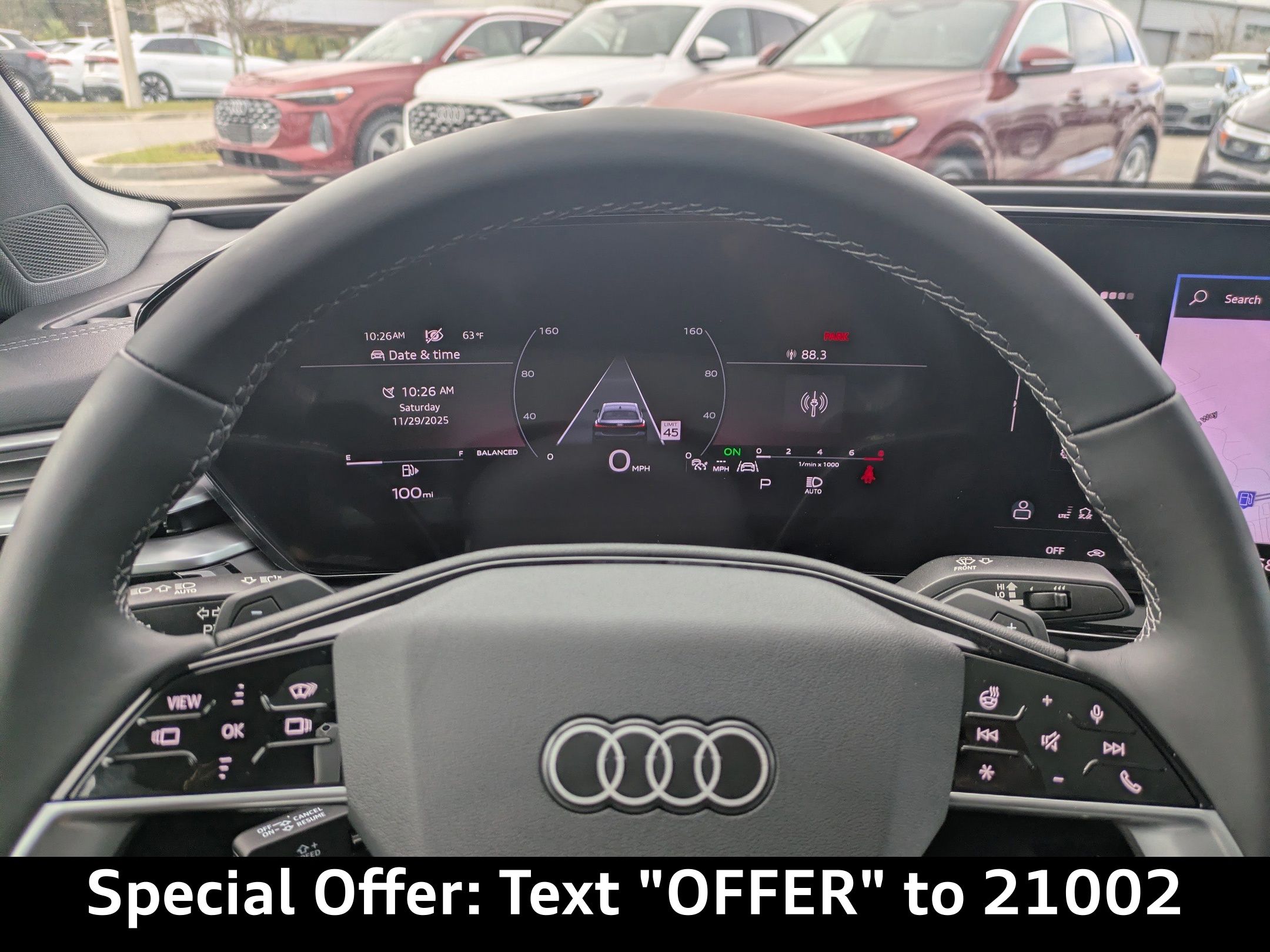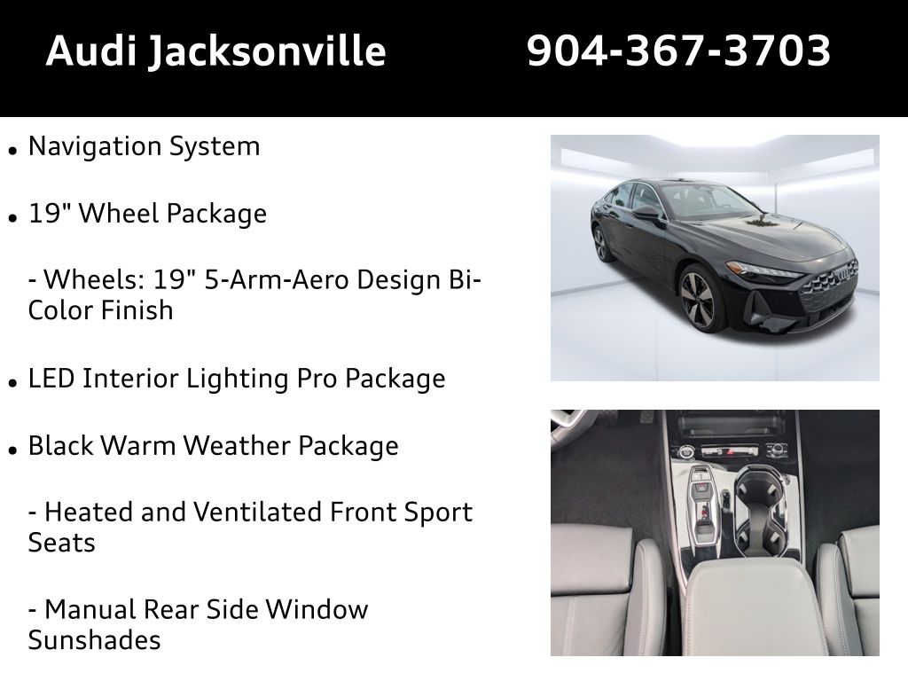 Mythos Black Metallic 2025 Audi All-new A5 quattro Premium Plus 7-Speed Automatic S tronic 2.0L 4-Cylinder TFSI 19 Wheel Package, ABS brakes, Adaptive Cruise Assist, Alloy wheels, Animation For Taillights, Audi Beam-Rings, Audi Guard All-Weather Mats, Audi Guard Cargo Mat, Bang & Olufsen Sound System with 3D Sound, Black Warm Weather Package, Compass, Dynamic Interaction Light, Electronic Stability Control, Front Bucket Seats, Front Center Armrest, Front dual zone A/C, Head-Up Display, Heated and Ventilated Front Sport Seats, Heated door mirrors, Heated Front Bucket Seats, Heated front seats, Heated Steering Wheel with Hands-on Detection, Illuminated entry, LED Headlights Plus with Digital DRL, LED Interior Lighting Pro Package, Low tire pressure warning, Manual Rear Side Window Sunshades, Navigation System, Panoramic Glass with Variable Light Control, Park Assist Plus, Power Liftgate, Power passenger seat, Premium Plus, Remote keyless entry, Split folding rear seat, Top View Camera System, Traction control, USB Power Delivery (2x60W Front and 2x100W Rear), Wheels: 19 5-Arm-Aero Design Bi-Color Finish.Recent Arrival! 22/31 City/Highway MPG