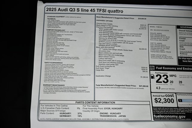 Chronos Gray Metallic 2025 2.0L 4-Cylinder TFSI Audi Q3 Premium PlusThis vehicle is located exclusively at Checkered Flag Audi only minutes from Norfolk, Chesapeake, Hampton and all of Hampton Roads!! We are located at 5200 Virginia Beach Blvd. 20/28 City/Highway MPG Price includes: $2500 - Season of Audi Customer Credit. Exp. 01/05/2026