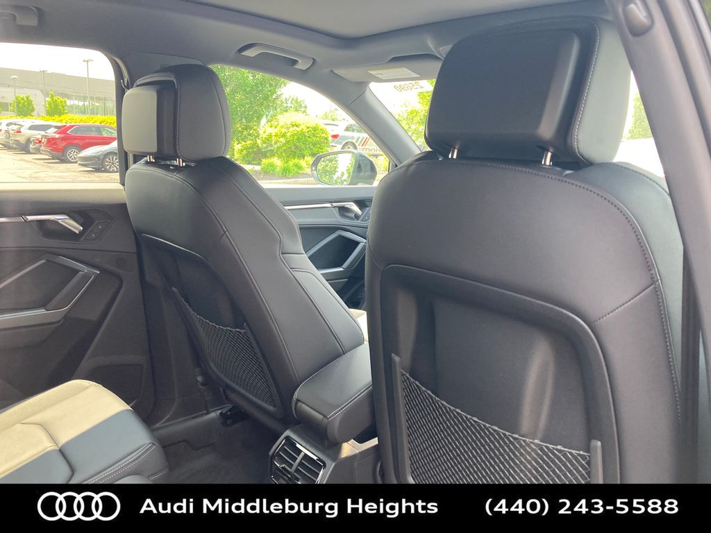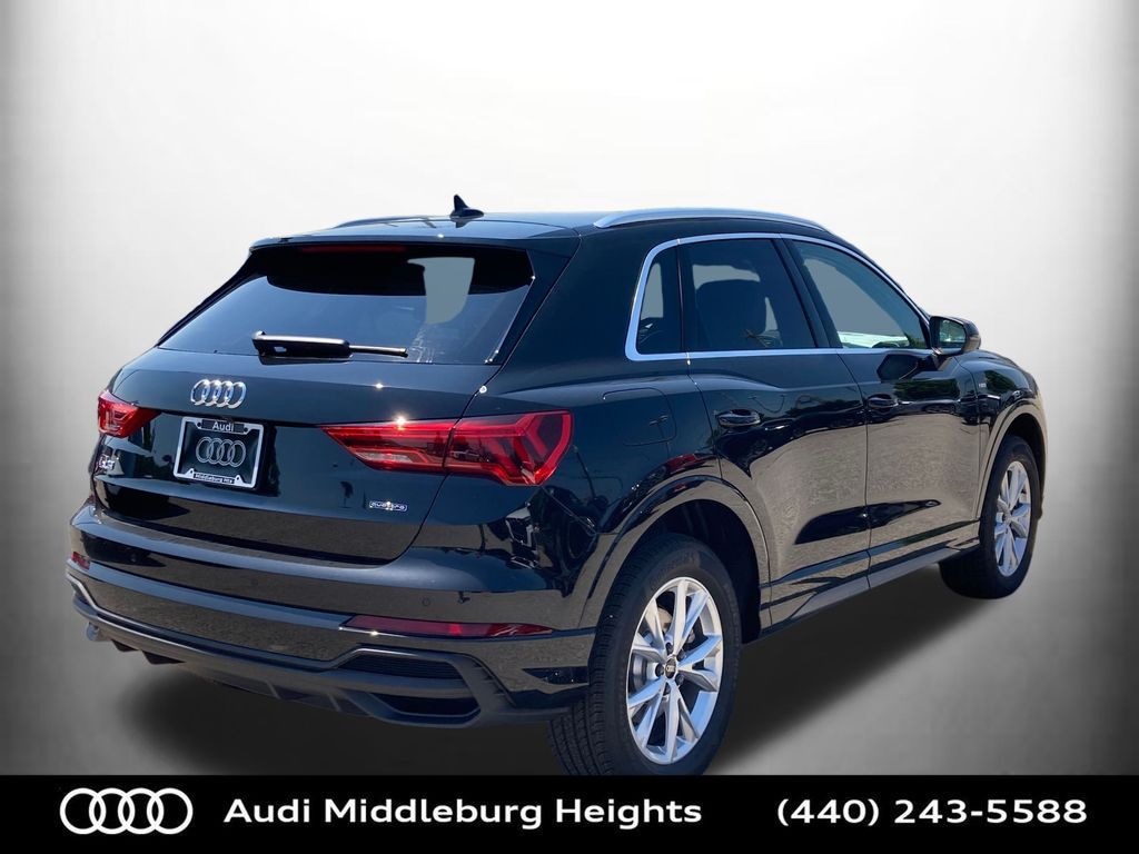 Clean CARFAX. Odometer is 11976 miles below market average!Audi Middleburg Heights (440-243-5588) is proud to present you this Gently Pre-Owned 2025 Audi Q3 Premium which has only 999 miles and is extremely well equipped with the following factory features :Black Optic Plus Package (Black Exterior Mirrors, Black Roof Rails, Carbon Inlays, Stainless Steel Pedal Caps, and Wheels: 19 7-Spoke-Rotor-Design), Black Optic Sport Package (Black Exterior Trim, Sport Front Bucket Seats, and Wheels: 19 5-Double-Arm Design), Convenience Package (Audi Advanced Key, Auto-Dimming Power-Folding Exterior Mirrors, Auto-Dimming Rear-View Mirror, Driver Seat Memory, Garage Door Opener (HomeLink), and Wireless Phone Charging Pad), LED Interior Lighting Package, Audi Certified pre-owned Certified, 10 Speakers, 4-Wheel Disc Brakes, ABS brakes, Air Conditioning, Alloy wheels, AM/FM radio, Audi smartphone interface (Apple CarPlay/Android Auto), Auto High-beam Headlights, Automatic temperature control, Brake assist, Bumpers: body-color, Delay-off headlights, Driver door bin, Driver vanity mirror, Dual front impact airbags, Dual front side impact airbags, Electronic Stability Control, Emergency communication system: Audi connect CARE, Exterior Parking Camera Rear, Four wheel independent suspension, Front anti-roll bar, Front Bucket Seats, Front Center Armrest, Front dual zone A/C, Front fog lights, Front reading lights, Fully automatic headlights, Heated door mirrors, Heated Front Bucket Seats, Heated front seats, Illuminated entry, Knee airbag, Leather Seating Surfaces, Leather Shift Knob, Leather steering wheel, Low tire pressure warning, Occupant sensing airbag, Outside temperature display, Overhead airbag, Overhead console, Panic alarm, Passenger door bin, Passenger vanity mirror, Power door mirrors, Power driver seat, Power Liftgate, Power moonroof: Panoramic, Power passenger seat, Power steering, Power windows, Radio data system, Radio: Audi Sound System, Rain sensing wipers, Rear air conditioning, Rear anti-roll bar, Rear reading lights, Rear seat center armrest, Rear window defroster, Rear window wiper, Remote keyless entry, Speed control, Speed-sensing steering, Split folding rear seat, Spoiler, Steering wheel mounted audio controls, Tachometer, Telescoping steering wheel, Tilt steering wheel, Traction control, Trip computer, Turn signal indicator mirrors, Variably intermittent wipers, and Wheels: 18 5-V-Spoke-S Design This Vehicle has been thoroughly inspected by our Certified Technicians and professionally serviced. We also take pride in our reconditioning process and all vehicles get a deluxe detail service.20/28 City/Highway MPG Audi Certified pre-owned Details: * Warranty Deductible: $0 * Vehicle History * Roadside Assistance * 125+ Point Inspection * Certified pre-owned Limited Warranty: For all CPO sales on or after 8/1/23, if New Vehicle Limited Warranty (NVLW) coverage remains at time of CPO purchase, CPO Limited Warranty Coverage commences upon expiration of NVLW and continues for a period of 1 year or 20,000 miles, whichever occurs first. If NVLW coverage has expired at time of CPO purchase, CPO Limited Warranty coverage commences at time of purchase and continues for 1 year or 20,000 miles, whichever occurs first. Roadside Assistance for 1 year with unlimited miles, whichever occurs first. Effective 8/1/23 onward, private party transfers no longer accepted, eligible for previous CPO customers with sale dates prior to 8/1/23 to utilize if they so choose.We respond to all online inquiries. If you provide an email address with your inquiry, please check your spam folder as our return response information may be moved there by your email provider. Although, here at Audi Middleburg Heights we strive to make sure our online advertising is 100% accurate, errors or omissions may occur from time to time. Please check availability, pricing and options before finalizing your purchase.
