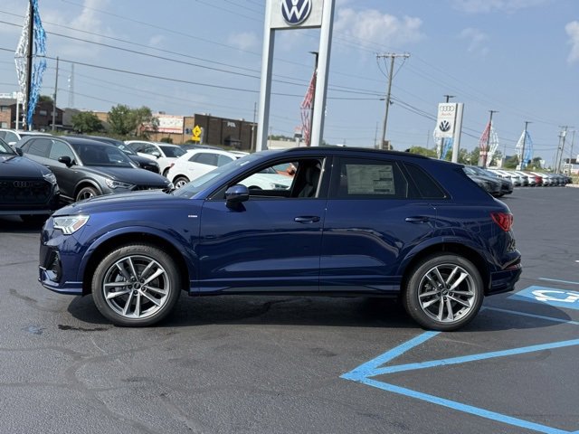 Audi Advanced Key, Audi Beam-Rings, Audi Guard All-Weather Mats, Auto-Dimming Power-Folding Exterior Mirrors, Auto-Dimming Rear-View Mirror, Black Exterior Trim, Black Optic Sport Package, Black Roof Rails, Brown Gray Natural Wood Inlay, Convenience Package, Driver Seat Memory, Garage Door Opener (HomeLink), LED Interior Lighting Package, Sport Front Bucket Seats, Wheels: 19 5-Double-Arm Design, Wireless Phone Charging Pad.<br>2025 Audi Q3 4D Sport Utility quattro 2.0L 4-Cylinder TFSI Navarra Blue Metallic 8-Speed Automatic with Tiptronic<br>20/28 City/Highway MPG<br><br>Prices shown do not include taxes, license, or $251.05 doc fee. While every reasonable effort is made to ensure the accuracy of this information, we are not responsible for any errors or omissions contained on these pages. Please verify any information in question with our Dealership. Manufacturer vehicle accessory costs, labor and installation vary.