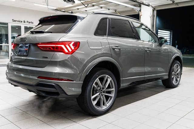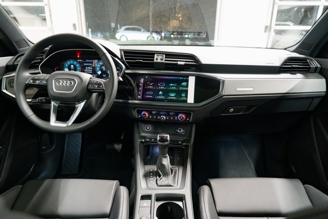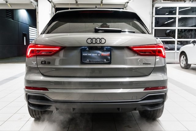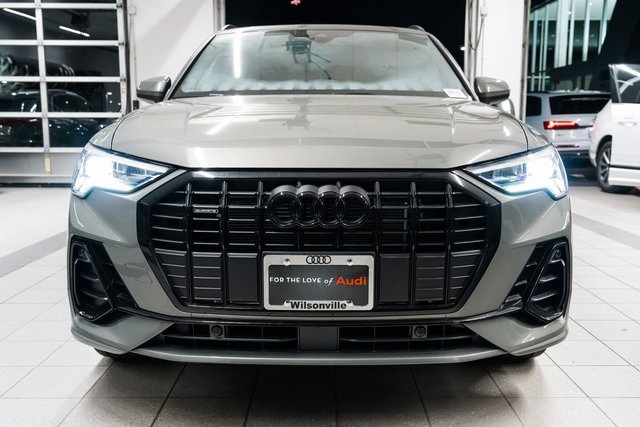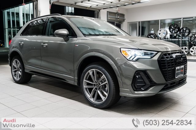 2025 Audi Q3 S line quattro Gray / Black LeatherThe 2025 Audi Q3 S line quattro delivers big personality in a compact, luxury SUV package. Wrapped in a modern Gray exterior with a sleek Black leather interior, this Q3 combines the boldness of S line styling with the confidence of Audis quattro all-wheel drive system.Under the hood, a 2.0L turbocharged TFSI engine pairs with an 8-speed Tiptronic automatic to deliver a spirited drive thats smooth and efficient. Audi Drive Select allows you to customize the feel between sporty and relaxed, while sport suspension tuning and speed-sensitive steering keep the Q3 agile in tight city streets or winding backroads.Inside, youre surrounded by Audis signature blend of craftsmanship and technology. Heated sport bucket seats with S embossing provide comfort and support, while the panoramic sunroof fills the cabin with natural light. The 12.3-inch Audi Virtual Cockpit Plus places key information directly in your line of sight, while wireless Apple CarPlay and Android Auto keep you seamlessly connected. Convenience features like Audi Advanced Key, driver seat memory, wireless phone charging, and a power liftgate make everyday driving easier.Technology and safety take center stage with MMI Navigation Plus, top view camera system, adaptive cruise control, lane guidance, and traffic sign recognition. The Sonos 3D Premium Sound System turns your playlists into a concert-like experience, while ambient LED interior lighting adds to the upscale vibe. Black Optic Sport Package details and available 20-inch alloy wheels give the Q3 an assertive stance that matches its performance.Call (503) 254-2834 or visit audiwilsonville.com to schedule your test drive at Audi Wilsonville, 26600 SW 95th Ave, Wilsonville, OR 97070.