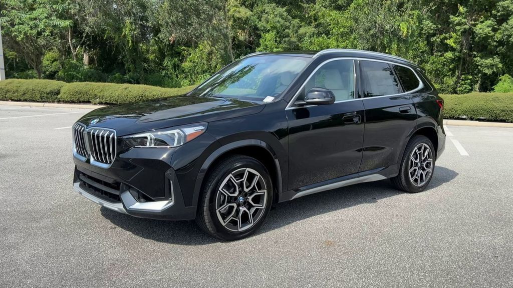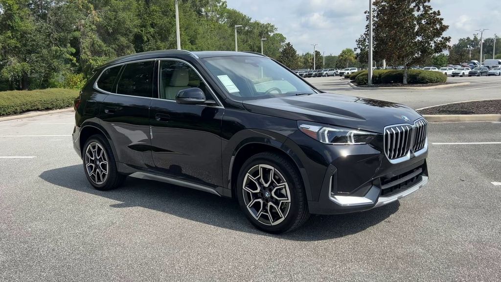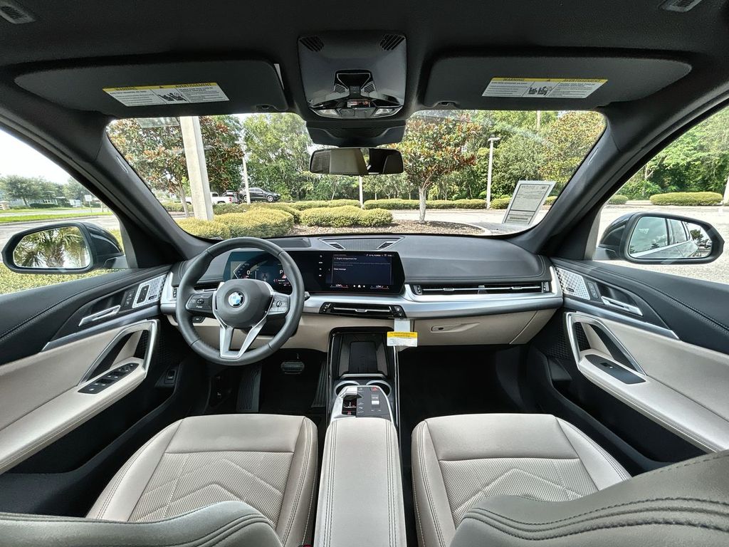 2025 BMW X1 xDrive28i Jet Black AWD 7-Speed Automatic 2.0L I4 16V TwinPower TurboTechnology Package (Anti-Theft Recorder, Auto-Dimming Interior and Exterior Mirrors, Auto-Dimming Rear-View Mirror, BMW Digital Key Plus with UWB, Comfort Access Keyless Entry, Head-Up Display, Live Cockpit Pro, Panoramic Moonroof, Parking Assistant Plus, Premium Content 1, Surround View with 3D View, and Wireless Device Charging), 4-Wheel Disc Brakes, 7 Speakers, ABS brakes, Air Conditioning, Alloy wheels, AM/FM Radio, AM/FM radio: SiriusXM with 360L, Apple CarPlay and Android Auto Compatibility, Apple CarPlay Compatibility, Auto High-beam Headlights, Automatic temperature control, BMW Assist ECall, BMW TeleServices, Brake assist, Bumpers: body-color, Compass, Delay-off headlights, Driver door bin, Driver vanity mirror, Dual front impact airbags, Dual front side impact airbags, Electronic Stability Control, Emergency communication system: BMW Assist eCall, Exterior Parking Camera Rear, Four wheel independent suspension, Front anti-roll bar, Front Bucket Seats, Front Center Armrest w/Storage, Front dual zone A/C, Front reading lights, Harman/Kardon Premium Sound System, Heated door mirrors, Heated Front Seats, Heated front seats, Illuminated entry, Knee airbag, Leather steering wheel, Low tire pressure warning, Memory seat, Navigation, Navigation System, Occupant sensing airbag, Outside temperature display, Overhead airbag, Overhead console, Panic alarm, Passenger door bin, Passenger vanity mirror, Perforated Veganza Upholstery, Personal ESIM 5G, Power door mirrors, Power driver seat, Power Front Seats, Power Liftgate, Power passenger seat, Power steering, Power windows, Radio data system, Rain sensing wipers, Rear anti-roll bar, Rear reading lights, Rear seat center armrest, Rear window defroster, Rear window wiper, Remote Engine Start, Remote keyless entry, Security system, SiriusXM with 360L and 1 Year Platinum Plan Subscription, Speed control, Speed-sensing steering, Speed-Sensitive Wipers, Split folding rear seat, Spoiler, Steering wheel mounted audio controls, Tachometer, Telescoping steering wheel, Tilt steering wheel, Traction control, Trip computer, Turn signal indicator mirrors, Universal Garage-Door Opener, Variably intermittent wipers, Wheels: 18 x 7.5 V-Spoke Bi-Color, Wheels: 19 x 8.0 Y-Spoke, and Widescreen Display.24/33 City/Highway MPG