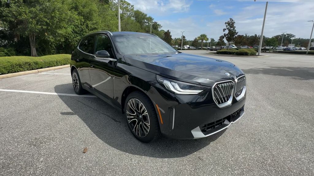 2025 BMW X3 30 xDrive Black Sapphire Metallic AWD 8-Speed Automatic I48-Speed Automatic. Parking Assistance Package (Parking Assistant Professional), Premium Package (ACC Stop & Go + Active Driving Assistant, BMW Curved Display w/HUD, Heated Steering Wheel, Interior Camera, Parking Assistant Plus, Premium Content 1, Remote Engine Start, Sky Lounge Panoramic Roof, and Travel & Comfort System), 8-Speed Automatic, 12 Speakers, 4-Wheel Disc Brakes, ABS brakes, Air Conditioning, Alloy wheels, AM/FM Radio, AM/FM radio: SiriusXM, Apple CarPlay & Android Auto Compatibility, Auto High-beam Headlights, Auto-dimming door mirrors, Auto-dimming Rear-View mirror, Automatic temperature control, BMW Assist eCall, BMW Iconic Glow Kidney Grille, BMW TeleServices, Brake assist, Bumpers: body-color, Delay-off headlights, Driver door bin, Driver vanity mirror, Dual front impact airbags, Dual front side impact airbags, Electronic Stability Control, Emergency communication system: BMW Assist eCall, Exterior Parking Camera Rear, Four wheel independent suspension, Front anti-roll bar, Front Bucket Seats, Front Center Armrest, Front dual zone A/C, Front reading lights, Fully automatic headlights, Garage door transmitter, harman/kardon Surround Sound System, Heated door mirrors, Heated Front Seats, Heated front seats, Hi-Fi Sound System, Illuminated entry, Knee airbag, Low tire pressure warning, Memory seat, Navigation, Navigation system: BMW Maps Navigation, Occupant sensing airbag, Outside temperature display, Overhead airbag, Overhead console, Panic alarm, Passenger door bin, Passenger vanity mirror, Personal eSIM 5G, Power door mirrors, Power driver seat, Power Front Seats, Power Liftgate, Power passenger seat, Power steering, Power windows, Radio data system, Rain sensing wipers, Rear anti-roll bar, Rear reading lights, Rear seat center armrest, Rear window defroster, Rear window wiper, Remote keyless entry, Security system, SiriusXM Satellite Radio w/1 Year Subscription, Speed control, Speed-Sensitive Wipers, Split folding rear seat, Spoiler, Sport Seats, Sport steering wheel, Steering wheel mounted audio controls, Tachometer, Telescoping steering wheel, Tilt steering wheel, Traction control, Trip computer, Turn signal indicator mirrors, Variably intermittent wipers, Veganza Perforated & Quilted Upholstery, Wheels: 19 x 8.5 Aero Midnight Grey Bicolor, Wheels: 20 x 9.0 Fr & 20 x 10.5 Rr, and Wireless Device Charging.27/33 City/Highway MPG