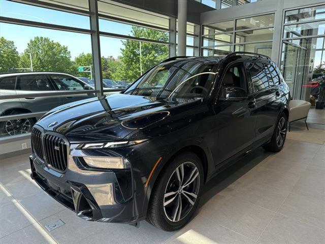 Experience the ultimate in luxury and performance with this Black 2025 BMW X7 M60i Sports Activity Vehicle, showing just 1 mile on the odometer. Powered by a 4.4L Twin Turbo V8 delivering 523hp and paired with an 8-speed sport automatic transmission, this SUV features BMW's advanced xDrive all-wheel drive for exceptional handling in any condition. The M60i comes loaded with standout options including the Climate Comfort Package (front and rear heated/ventilated Merino leather seats, 5-zone automatic climate control), M Sport Professional Package (black exterior accents, M Sport brakes, Shadowline trim), and the Driving Assistance Professional Package (Active Cruise Control with Stop & Go, Traffic Jam Assistant, Parking Assistant Professional, Active Blind Spot Detection, Lane Keeping Assistant). Enjoy the immersive Harman/Kardon sound system, a panoramic dual sunroof, 22 alloy wheels, and advanced tech like a 14.9 touchscreen with navigation, Apple CarPlay, and Surround View 3D cameras. With seating for 7 and power-folding third-row seats, the X7 M60i is ready for any adventure. This brand-new, feature-packed BMW is the perfect blend of power, luxury, and innovation-don't miss your chance to own it.