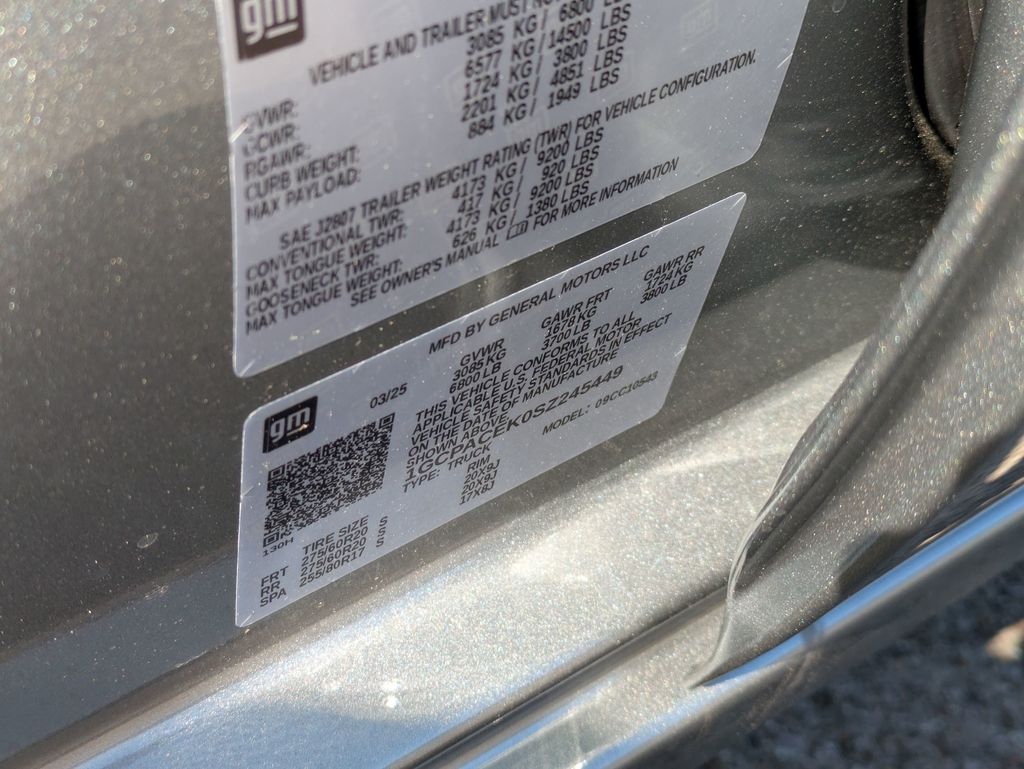 2025 Chevrolet Silverado 1500 LT All Star Edition Plus (Wheels: 20 x 9 Painted Aluminum), Convenience Package (10-Way Power Driver Seat w/Lumbar, 120-Volt Bed Mounted Power Outlet, 120-Volt Interior Power Outlet, Dual Rear USB Ports (Charge Only), Dual-Zone Automatic Climate Control, Heated Driver & Front Outboard Passenger Seats, Heated Steering Wheel, Keyless Open & Start, LED Cargo Area Lighting, Manual Tilt/Telescoping Steering Column, and Wrapped Steering Wheel), Convenience Package II (Hitch Guidance w/Hitch View, In-Vehicle Trailering System App, Power Sliding Rear Window w/Rear Defogger, and Universal Home Remote), High Capacity Suspension Package, Preferred Equipment Group 1LT (12.3 Multicolor Reconfigurable Digital Display, All-Star Edition, Auto-Locking Rear Differential, Bluetooth For Phone, Chrome Mirror Caps, Color-Keyed Carpeting Floor Covering, Deep-Tinted Glass, Electronic Cruise Control, EZ Lift Power Lock & Release Tailgate, Front Rubberized Vinyl Floor Mats, HD Rear Vision Camera, Heated Power-Adjustable Outside Mirrors, Inside Rear-View Mirror w/Tilt, Integrated Trailer Brake Controller, OnStar Services Capable, Power Front Windows w/Driver Express Up/Down, Power Front Windows w/Passenger Express Down, Power Rear Windows w/Express Down, Rear 60/40 Folding Bench Seat (Folds Up), Rear Rubberized-Vinyl Floor Mats, SiriusXM w/360L Trial Subscription, Standard Tailgate, Steering Wheel Audio Controls, Teen Driver, Tire Pressure Monitoring System, and Wi-Fi Hot Spot Capable), Remote Start Package (Electric Rear-Window Defogger, Remote Vehicle Starter System, and Theft Deterrent System (Unauthorized Entry)), Standard Suspension Package, Trailering Package (Hitch Guidance), 220 Amp Alternator, 3.42 Rear Axle Ratio, 4-Wheel Disc Brakes, 40/20/40 Front Split-Bench Seat, 6 Speakers, 6-Speaker Audio System, ABS brakes, Air Conditioning, Alloy wheels, AM/FM radio: SiriusXM with 360L, Apple CarPlay/Android Auto, Auto High-beam Headlights, Automatic Emergency Braking, Automatic temperature control, Brake assist, Bumpers: chrome, Cloth Seat Trim, Compass, Delay-off headlights, Driver door bin, Driver vanity mirror, Dual front impact airbags, Dual front side impact airbags, Electronic Stability Control, Emergency communication system: OnStar, Following Distance Indicator, Forward Collision Alert, Front anti-roll bar, Front Center Armrest w/Storage, Front dual zone A/C, Front Pedestrian Braking, Front reading lights, Front wheel independent suspension, Fully automatic headlights, Heated door mirrors, Heated front seats, Heated steering wheel, Illuminated entry, IntelliBeam Automatic High Beam On/Off, Lane Keep Assist w/Lane Departure Warning, Low tire pressure warning, Occupant sensing airbag, Outside temperature display, Overhead airbag, Overhead console, Panic alarm, Passenger door bin, Passenger vanity mirror, Power door mirrors, Power driver seat, Power steering, Power Tailgate, Power windows, Premium audio system: Chevrolet Infotainment 3 Premium, Radio data system, Radio: Chevrolet Infotainment 3 Premium System, Rear reading lights, Rear step bumper, Rear window defroster, Remote keyless entry, Security system, Speed control, Speed-sensing steering, Split folding rear seat, Steering wheel mounted audio controls, Tachometer, Telescoping steering wheel, Tilt steering wheel, Traction control, Trip computer, Variably intermittent wipers, Voltmeter, and Wheels: 17 x 8 Bright Silver Painted Aluminum. RWD Sterling Gray Metallic 10-Way Power Driver Seat w/Lumbar, 12.3 Multicolor Reconfigurable Digital Display, 120-Volt Bed Mounted Power Outlet, 120-Volt Interior Power Outlet, 220 Amp Alternator, 3.42 Rear Axle Ratio, 4-Wheel Disc Brakes, 40/20/40 Front Split-Bench Seat, 6 Speakers, 6-Speake Customer may qualify for additional rebates. Please see dealership for details. Price includes: $1000 - Bonus Cash. Exp. 02/02/2026 $1000 - Select Market Purchase Bonus Cash. Exp. 02/02/2026 $3000 - Customer Cash. Exp. 02/02/2026