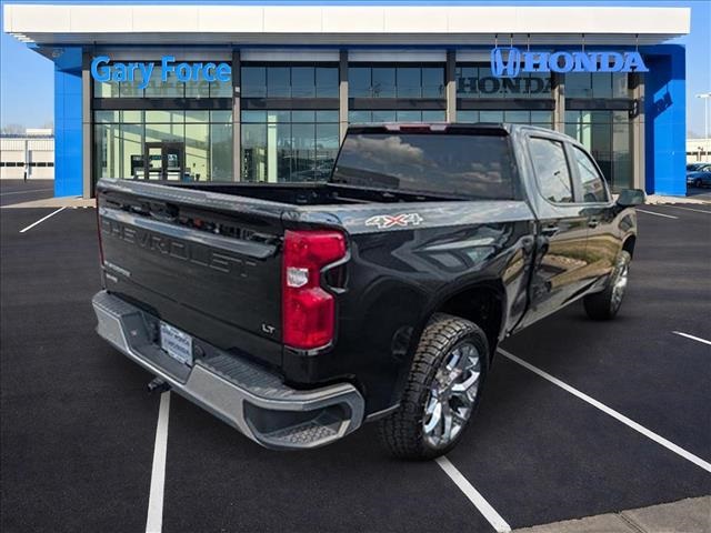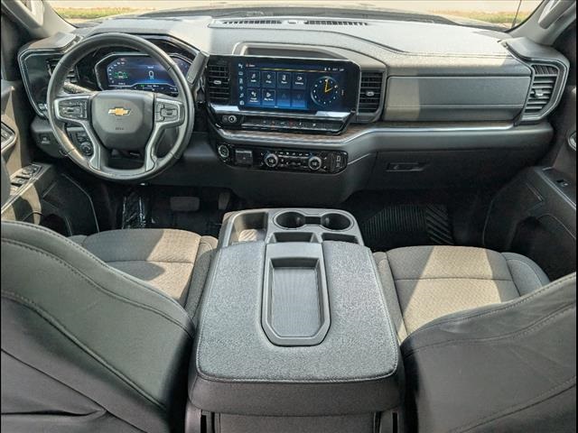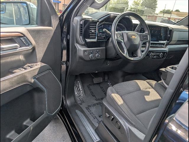 CARFAX One-Owner. Clean CARFAX.Black 2025 Chevrolet Silverado 1500 4D Crew Cab LT LT1 4WD 10-Speed Automatic EcoTec3 5.3L V810-Speed Automatic, 4WD, Black Cloth, 10-Way Power Driver Seat w/Lumbar, 12.3 Multicolor Reconfigurable Digital Display, 120-Volt Bed Mounted Power Outlet, 120-Volt Interior Power Outlet, 170 Amp Alternator, 220 Amp Alternator, 3.23 Rear Axle Ratio, 4-Wheel Disc Brakes, 40/20/40 Front Split-Bench Seat, 6 Speakers, 6-Speaker Audio System, ABS brakes, Air Conditioning, All-Star Edition, Alloy wheels, AM/FM radio: SiriusXM with 360L, Apple CarPlay/Android Auto, Auto High-beam Headlights, Auto-Locking Rear Differential, Automatic Emergency Braking, Automatic temperature control, Auxiliary External Transmission Oil Cooler, Bluetooth For Phone, Brake assist, Bumpers: chrome, Chrome Mirror Caps, Cloth Seat Trim, Color-Keyed Carpeting Floor Covering, Compass, Convenience Package, Deep-Tinted Glass, Delay-off headlights, Driver door bin, Driver vanity mirror, Dual front impact airbags, Dual front side impact airbags, Dual Rear USB Ports (Charge Only), Dual-Zone Automatic Climate Control, Electric Rear-Window Defogger, Electronic Cruise Control, Electronic Stability Control, Emergency communication system: OnStar, External Engine Oil Cooler, EZ Lift Power Lock & Release Tailgate, Following Distance Indicator, Forward Collision Alert, Front anti-roll bar, Front Center Armrest w/Storage, Front dual zone A/C, Front Frame-Mounted Black Recovery Hooks, Front Pedestrian Braking, Front reading lights, Front Rubberized Vinyl Floor Mats, Front wheel independent suspension, Fully automatic headlights, HD Rear Vision Camera, Heated door mirrors, Heated Driver & Front Outboard Passenger Seats, Heated front seats, Heated Power-Adjustable Outside Mirrors, Heated Steering Wheel, Heated steering wheel, Hitch Guidance, Illuminated entry, Inside Rear-View Mirror w/Tilt, Integrated Trailer Brake Controller, IntelliBeam Automatic High Beam On/Off, Keyless Open & Start, Lane Keep Assist w/Lane Departure Warning, LED Cargo Area Lighting, Low tire pressure warning, Manual Tilt/Telescoping Steering Column, Occupant sensing airbag, OnStar Services Capable, Outside temperature display, Overhead airbag, Overhead console, Panic alarm, Passenger door bin, Passenger vanity mirror, Power door mirrors, Power driver seat, Power Front Windows w/Driver Express Up/Down, Power Front Windows w/Passenger Express Down, Power Rear Windows w/Express Down, Power steering, Power windows, Preferred Equipment Group 1LT, Premium audio system: Chevrolet Infotainment 3 Premium, Radio data system, Radio: Chevrolet Infotainment 3 Premium System, Rear 60/40 Folding Bench Seat (Folds Up), Rear reading lights, Rear Rubberized-Vinyl Floor Mats, Rear step bumper, Rear window defroster, Remote keyless entry, Remote Start Package, Remote Vehicle Starter System, Security system, SiriusXM w/360L Trial Subscription, Speed control, Speed-sensing steering, Split folding rear seat, Standard Suspension Package, Standard Tailgate, Steering Wheel Audio Controls, Steering wheel mounted audio controls, Tachometer, Teen Driver, Telescoping steering wheel, Theft Deterrent System (Unauthorized Entry), Tilt steering wheel, Tire Pressure Monitoring System, Traction control, Trailering Package, Trip computer, Variably intermittent wipers, Voltmeter, Wheels: 17 x 8 Bright Silver Painted Aluminum, Wi-Fi Hot Spot Capable, Wrapped Steering Wheel, 10-Speed Automatic, 4WD, Black Cloth.