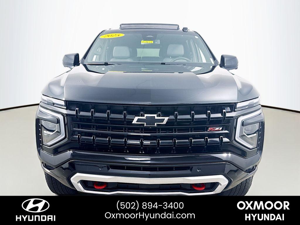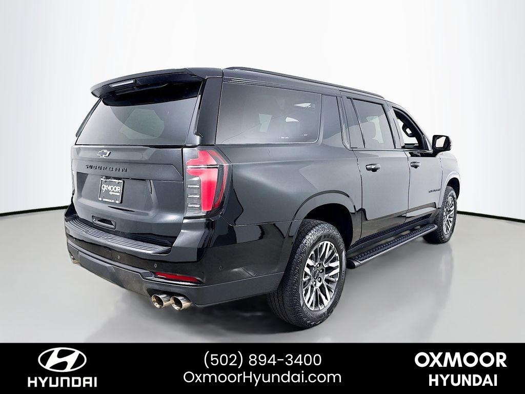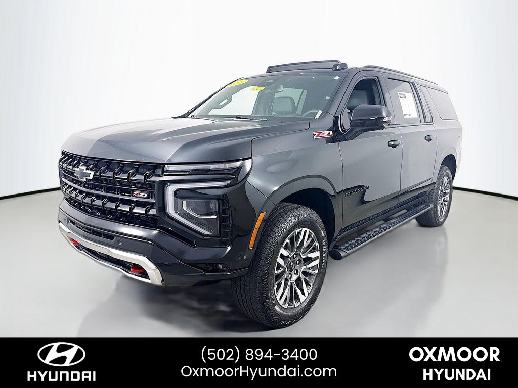<b>Summary</b><br>***THIS VEHICLE IS LOCATED AT OXMOOR HYUNDAI (502)894-3400***<br><br>***THIS VEHICLE IS LOCATED AT OXMOOR HYUNDAI (502)894-3400***<br><br><b>Vehicle Details</b><br>Discover the ultimate combination of capability' comfort' and value with this 2025 Chevrolet Suburban Z71 a rugged 4WD SUV with a powerful V8 5.3L gasoline engine and only 14'975 miles. Located in Louisville' KY' this low-mileage Chevrolet Suburban Z71 delivers confident towing and off-road-ready performance' backed by a CARFAX 1-Owner history for added peace of mind.<br><br>Built for families and adventurers' the Chevrolet Suburban Z71 features a host of modern tech and safety amenities' including Wireless Phone Charging' Android Auto integration' Back-Up Camera' and Lane Departure Warning. The spacious cabin and versatile cargo area make long trips and daily drives effortless' while the Z71 suspension and 4WD capability ensure capability on rough roads or snowy Kentucky winters.<br><br>This Chevrolet Suburban is priced to move offering the best price you'll find for this level of equipment and condition. Low mileage and a clean ownership history make it a smart buy for drivers seeking long-term value and reliability. Whether you need serious towing capacity' three-row seating' or a comfortable commuter with advanced driver aids' this Chevrolet Suburban Z71 checks every box.<br><br>Don't miss a chance to own a well-equipped' low-mileage 2025 Chevrolet Suburban Z71 in Louisville' KY top features' robust V8 power' proven 4WD capability' and the best price available. Schedule a test drive today.<br><br><b>Equipment</b><br>Carry lots of cargo while your passengers are comfortable. The vehicle has four wheel drive capabilities. This Chevrolet Suburban has automated speed control that adjusts to maintain a safe following distance' enhancing highway driving convenience. The vehicle comes equipped with Android Auto for seamless smartphone integration on the road. Apple CarPlay: Seamless smartphone integration for the Chevrolet Suburban - stay connected and entertained on the go! The high efficiency automatic transmission shifts smoothly and allows you to relax while driving. This vehicle features a high end BOSE stereo system. See what's behind you with the back up camera on this model. The vehicle is painted with a sleek and sophisticated black color. Good News! This certified CARFAX 1-owner vehicle has only had one owner before you. Our dealership has already run the CARFAX report and it is clean. A clean CARFAX is a great asset for resale value in the future. Maintaining a stable interior temperature in this vehicle is easy with the climate control system. Easily set your speed in the vehicle with a state of the art cruise control system. Increase or decrease velocity with the touch of a button. This vehicle has a V8' 5.3L high output engine. The Chevrolet Suburban is equipped with a gasoline engine. It features a hands-free Bluetooth phone system. This 1/2 ton suv is pure luxury with a heated steering wheel. This model's Lane Departure Warning helps keep you in your lane. Lane Keep Assist in this model helps maintain safe driving by gently steering to stay within the lane. The leather seats in this Chevrolet Suburban are a must for buyers looking for comfort' durability' and style. Help alleviate lower back pain with the driver seat lumbar support in it. The installed navigation system will keep you on the right path. Enjoy the convenience of the power liftgate on this vehicle. Start it from inside with remote start. This model offers Wireless Phone Charging.<br><br><b>Packages</b><br>Comfort Package: Heated 2nd Row Outboard Seats; 2nd Row Power Release 60/40 Split-Folding Bench Seat; Memory Settings; LED Headlamps with LED Daytime Running Lamps; Heated Steering Wheel; Bose 10-Speaker Surround with CenterPoint; 3rd Row 60/40 Power-Folding Split-Bench; LED Tail Lamps; Heated Power-Adjustable Outside Mirrors Preferred Equipment Group 2Z7: Bright Front and Rear Door Sill Plates; Front Skid Plate; Front High-Approach Angle Fascia; 2-Speed Active Electronic Autotrac Transfer Case; Rear Power Liftgate; Hill Descent Control; 20 X 9 Bright Machined Aluminum Wheels; Dual Exhaust System; Red Recovery Hooks; Black Tubular Assist Steps; Heavy-Duty Air Filter; Front LED Fog Lamps; Wireless Phone Charging; 275/60R20SL AT BW Tires; 8-Way Power Front Passenger Seat Adjuster; Auto-Dimming Inside Rearview Mirror; Memory Settings For Driver; Heated Driver and Front Passenger Seats; Z71 Exterior Features; Universal Home Remote Dual-Pane Power Panoramic Sunroof Power Release 2nd Row Bucket Seats **Equipment listed is based on original vehicle build and subject to change. Please confirm the accuracy of the included equipment by calling the dealer prior to purchase.**<br><br><b>Additional Information</b><br>***THIS VEHICLE IS LOCATED AT OXMOOR HYUNDAI (502)894-3400***<br><br>It is your responsibility to address any differences between information on this label and the actual vehicle specifications' and/or any warranties offered before the sale of this vehicle. Vehicle data on this label is compiled from publicly available sources' the publisher believes to be reliable. Vehicle data may change without notice. The publisher assumes no responsibility for errors and/or omissions in this data' the compilation of this data or sticker placement' and makes no representations express or implied to any actual or perspective purchaser of the vehicle as to the condition of the vehicle' vehicle specifications' ownership' vehicle history' equipment/asscessories' price or warranties. Actual mileage may vary.