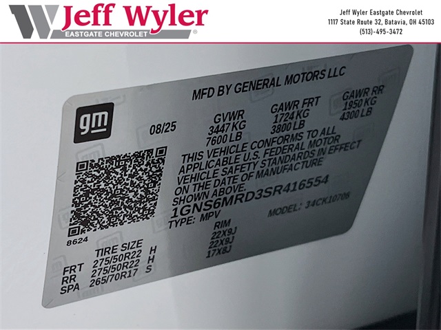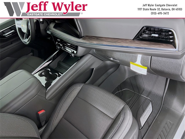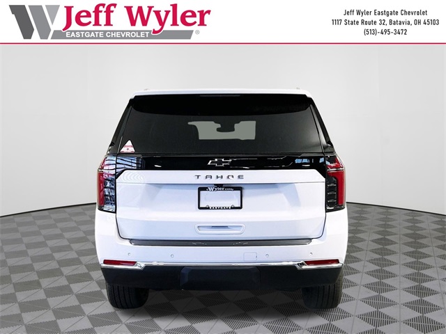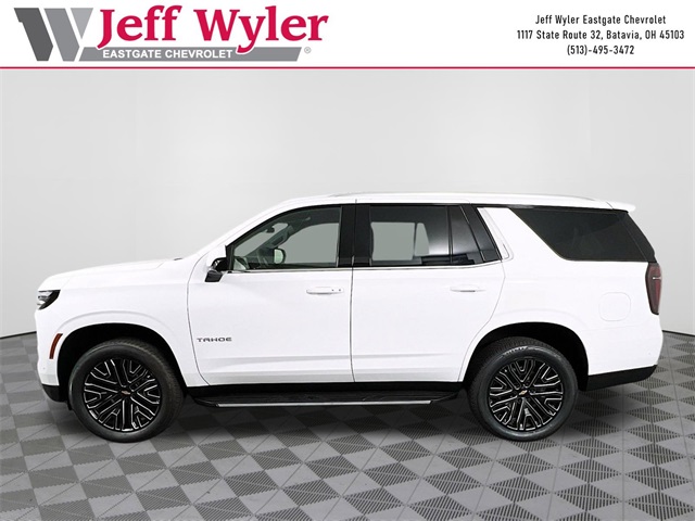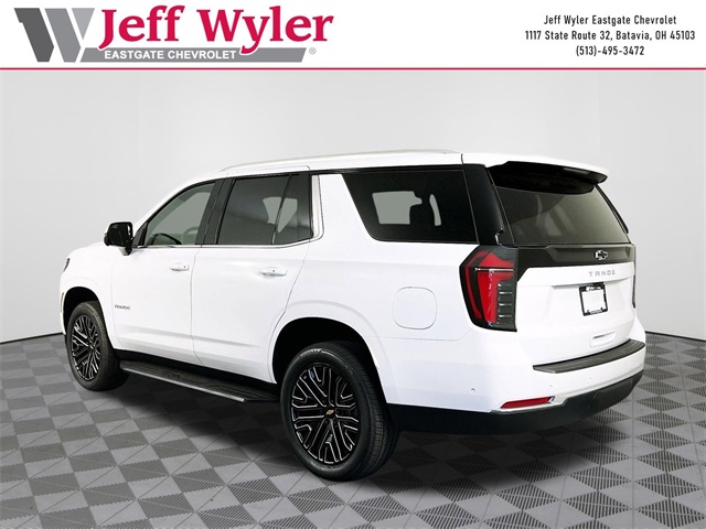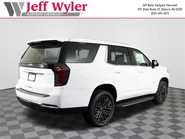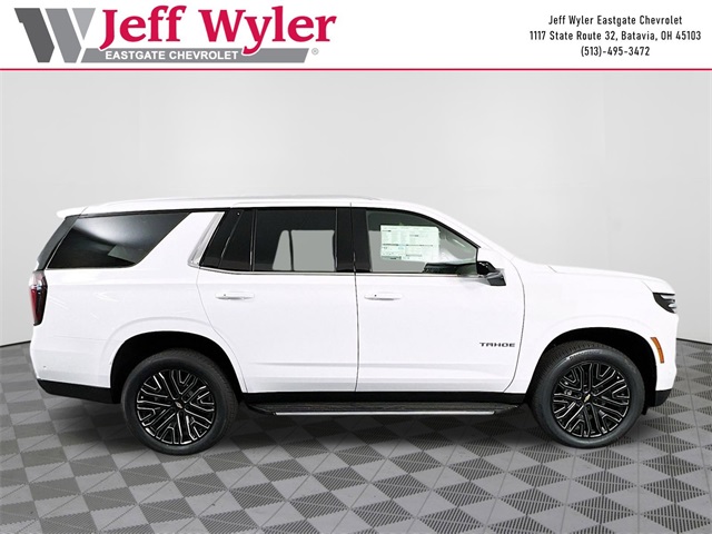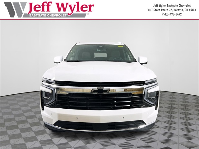 Summit White 2025 Chevrolet Tahoe LS EcoTec3 5.3L V8 4WD 10-Speed Automatic with Overdrive 15/19 City/Highway MPG Jeff Wyler Eastgate Auto Mall is honored to offer this terrific-looking 2025 Chevrolet Tahoe LS in Summit White. Well equipped with: Preferred Equipment Group 1LS (3-Spoke Wrapped Steering Wheel, 3rd Row Manual 60/40 Split-Folding Bench Seats, Color-Keyed Carpeting Floor Covering, Front Bucket Seats, Remote Start, and USB Ports), 2-Way Power Driver Lumbar Seat Adjuster, 2-Way Power Front Passenger Lumbar Seat Adjuster, 3.23 Rear Axle Ratio, 3rd row seats: split-bench, 4-Wheel Disc Brakes, 6 Speakers, 6-Speaker Audio System Feature, 6-Way Power Front Passenger Seat Adjuster, 8-Way Power Driver Seat Adjuster, ABS brakes, Air Conditioning, Alloy wheels, AM/FM radio: SiriusXM with 360L, Apple CarPlay/Android Auto, Auto High-beam Headlights, Automatic temperature control, Brake assist, Bumpers: body-color, Compass, Delay-off headlights, Driver door bin, Driver vanity mirror, Dual front impact airbags, Dual front side impact airbags, Electronic Stability Control, Emergency communication system: OnStar and Chevrolet connected services capable, Exterior Parking Camera Rear, Four wheel independent suspension, Front anti-roll bar, Front Center Armrest, Front dual zone A/C, Front reading lights, Fully automatic headlights, Heated door mirrors, Illuminated entry, Low tire pressure warning, Navigation system: Google built-in compatibility (select service plan required, terms and limitations apply), Occupant sensing airbag, Outside temperature display, Overhead airbag, Overhead console, Panic alarm, Passenger door bin, Passenger vanity mirror, Power door mirrors, Power driver seat, Power passenger seat, Power steering, Power windows, Premium audio system: Chevrolet Infotainment 3, Premium Cloth Seat Trim, Premium Smooth Ride Suspension, Radio data system, Radio: 17.7 Diagonal Advanced Color LCD Display, Rain sensing wipers, Rear air conditioning, Rear anti-roll bar, Rear reading lights, Rear seat center armrest, Rear window defroster, Rear window wiper, Remote keyless entry, Security system, Speed control, Speed-sensing steering, Split folding rear seat, Spoiler, Steering wheel mounted audio controls, Tachometer, Telescoping steering wheel, Tilt steering wheel, Traction control, Trip computer, Variably intermittent wipers, Voltmeter, and Wheels: 18 x 8.5 Bright Silver Painted Aluminum.