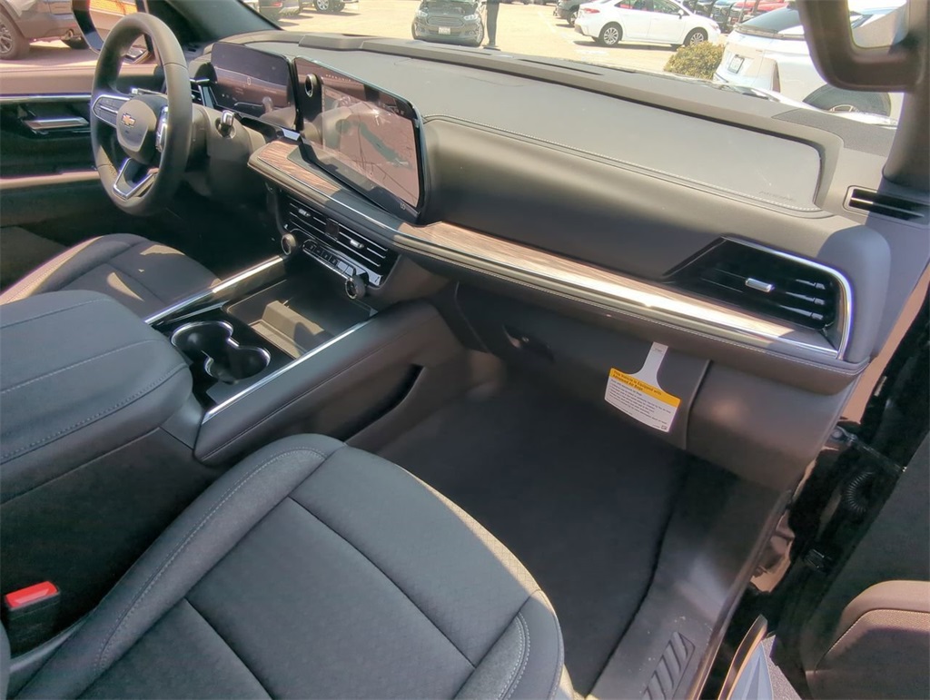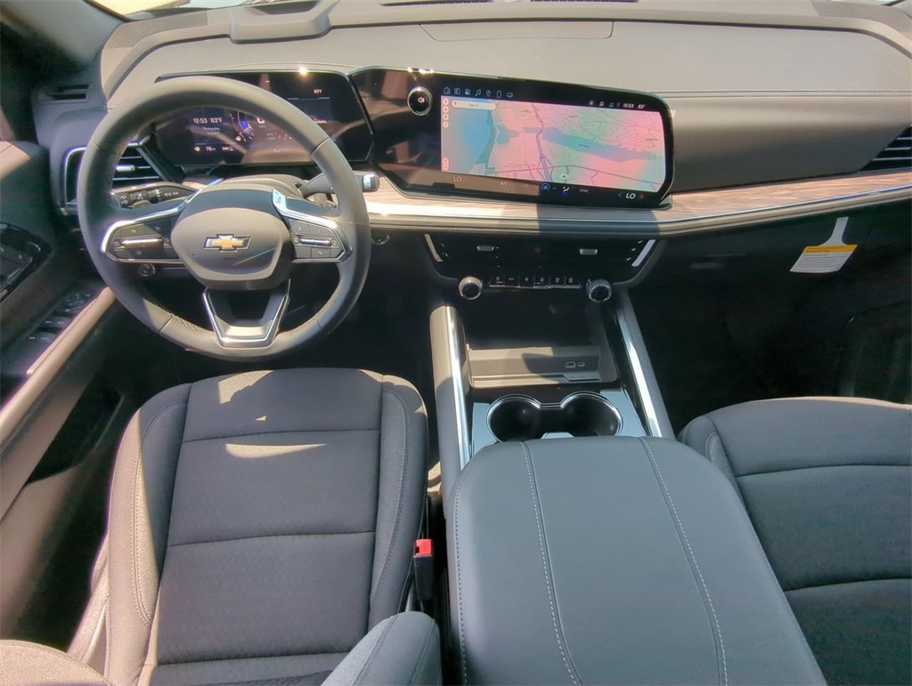 Pricing shown is discounted from MSRP and includes all Manufacturers Discounts. Price Cannot be applied on a lease or with Special Financing. Does not include dealer installed accessories.Black 2025 Chevrolet Tahoe LS EcoTec3 5.3L V8Dark Essentials Package (Black Name Plates and Front and Rear Black Bowtie Emblems), License Plate Front Mounting Package, Preferred Equipment Group 1LS (1st and 2nd Row Color-Keyed Carpeted Floor Mats, 3-Spoke Wrapped Steering Wheel, 3rd Row Manual 60/40 Split-Folding Bench Seats, Color-Keyed Carpeting Floor Covering, Floor Console with Storage Area, Front Bucket Seats, Front Pedestrian and Bicyclist Braking, Frontal Driver and Outboard Passenger Airbags, Remote Start, SiriusXM with 360L Trial Subscription, and USB Ports), 4WD, Black Cloth, 2-Way Power Driver Lumbar Seat Adjuster, 2-Way Power Front Passenger Lumbar Seat Adjuster, 3.23 Rear Axle Ratio, 3rd row seats: split-bench, 4-Wheel Disc Brakes, 6 Speakers, 6-Speaker Audio System Feature, 6-Way Power Front Passenger Seat Adjuster, 8-Way Power Driver Seat Adjuster, ABS brakes, Air Conditioning, Alloy wheels, AM/FM radio: SiriusXM with 360L, Apple CarPlay/Android Auto, Auto High-beam Headlights, Automatic temperature control, Black Exhaust Tip, Black Mirror Caps, Brake assist, Bumpers: body-color, Compass, Delay-off headlights, Deleted Mobile Service Plus, Driver door bin, Driver vanity mirror, Dual front impact airbags, Dual front side impact airbags, Electronic Stability Control, Emergency communication system: OnStar and Chevrolet connected services capable, Exterior Parking Camera Rear, Four wheel independent suspension, Front anti-roll bar, Front Center Armrest, Front dual zone A/C, Front reading lights, Fully automatic headlights, Heated door mirrors, Illuminated entry, Low tire pressure warning, Navigation system: Google built-in compatibility (select service plan required, terms and limitations apply), Occupant sensing airbag, Outside temperature display, Overhead airbag, Overhead console, Panic alarm, Passenger door bin, Passenger vanity mirror, Power door mirrors, Power driver seat, Power passenger seat, Power steering, Power windows, Premium audio system: Chevrolet Infotainment 3, Premium Cloth Seat Trim, Premium Smooth Ride Suspension, Radio data system, Radio: 17.7 Diagonal Advanced Color LCD Display, Rain sensing wipers, Rear air conditioning, Rear anti-roll bar, Rear reading lights, Rear seat center armrest, Rear window defroster, Rear window wiper, Remote keyless entry, Security system, Speed control, Speed-sensing steering, Split folding rear seat, Spoiler, Steering wheel mounted audio controls, Tachometer, Telescoping steering wheel, Tilt steering wheel, Traction control, Trip computer, Variably intermittent wipers, Voltmeter, and Wheels: 18 x 8.5 Bright Silver Painted Aluminum. 4WD, Black Cloth.2025 Chevrolet Tahoe LS