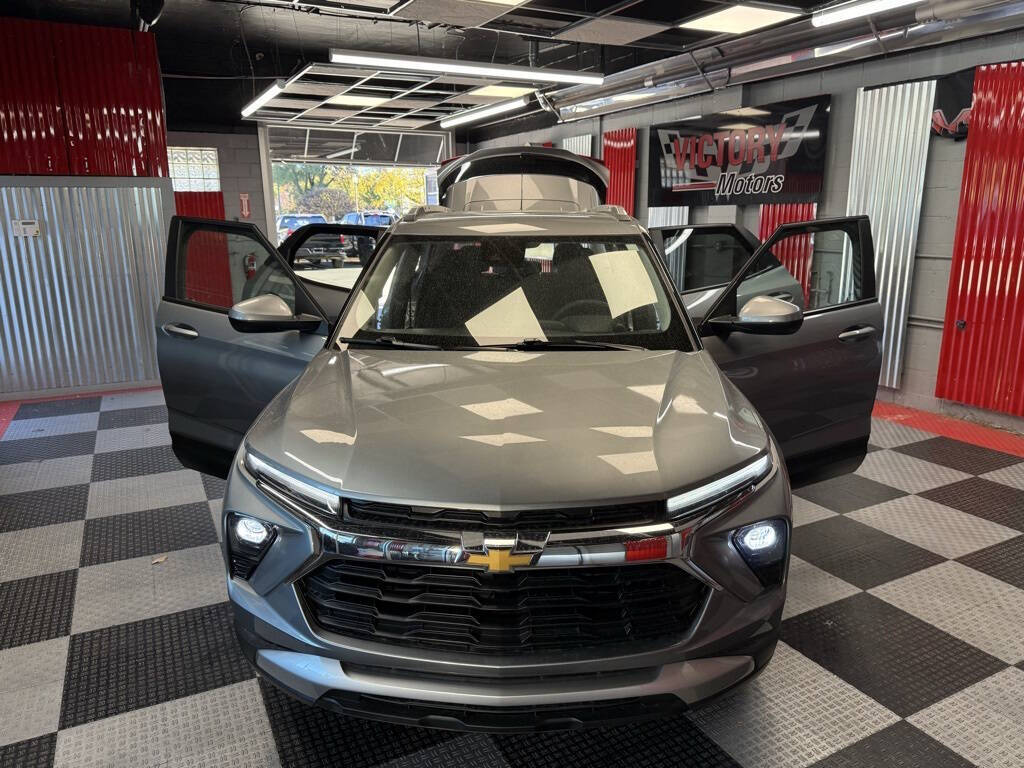 Victory Motors was founded on trust, integrity, and respect. We are proud to have these values in our sales and business practices so our customers keep coming back. Your satisfaction is our #1 priority!<br /><br />Clean Title Only! Every Vehicle Comes Fully Safety Inspected!<br /><br /><br />Sterling Gray Metallic 2025 Chevrolet TrailBlazer LT AWD 9-Speed Automatic 1.3L I3 Turbocharged DOHC 12V LEV3-SULEV30 155hp<br /><br />3.17 Final Drive Axle Ratio, 4-Way Manual Front Passenger Seat Adjuster, 4-Wheel Disc Brakes, 6 Speakers, 6-Way Manual Driver Seat Adjuster, ABS brakes, Air Conditioning, Alloy wheels, AM/FM radio: SiriusXM, Auto High-beam Headlights, Brake assist, Bumpers: body-color, Cloth Seat Trim, Compass, Delay-off headlights, Driver door bin, Driver vanity mirror, Dual front impact airbags, Dual front side impact airbags, Electronic Stability Control, Emergency communication system: OnStar and Chevrolet connected services capable, Exterior Parking Camera Rear, Flat-Folding Front Passenger Seatback, Front anti-roll bar, Front Bucket Seats, Front Center Armrest, Front reading lights, Front wheel independent suspension, Fully automatic headlights, Heated door mirrors, Illuminated entry, Knee airbag, Low tire pressure warning, Occupant sensing airbag, Overhead airbag, Overhead console, Panic alarm, Passenger door bin, Passenger vanity mirror, Power door mirrors, Power steering, Power windows, Preferred Equipment Group 1LT, Radio data system, Radio: AM/FM Stereo Audio System, Rear side impact airbag, Rear window defroster, Rear window wiper, Remote keyless entry, Security system, SiriusXM Trial Subscription, Speed control, Split folding rear seat, Spoiler, Steering wheel mounted audio controls, Tachometer, Telescoping steering wheel, Tilt steering wheel, Traction control, Trip computer, Variably intermittent wipers, Wheels: 17'' High Gloss Black Machined Aluminum, Wireless Apple CarPlay/Android Auto.<br /><br /><br />26/29 City/Highway MPG 26/29 City/Highway MPG