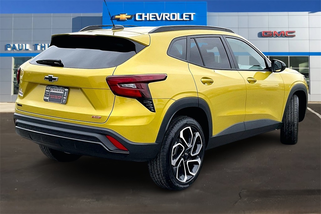 28/32 City/Highway MPGNitro Yellow Metallic 2025 Chevrolet Trax 2RS 1.2L I3 DI Turbocharged DOHC 12V LEV3-ULEV70 137hp FWD Driver Confidence Package (Adaptive Cruise Control, Lane Change Alert with Side Blind Zone Alert, Rear Cross-Traffic Alert, and Rear Park Assist), Preferred Equipment Group 2RS, 2-Way Adjustable Front Head Restraints, 2-Way Power Driver Lumbar Seat Adjuster, 3.50 Final Drive Axle Ratio, 4-Way Manual Front Passenger Seat Adjuster, 4-Wheel Disc Brakes, 6 Speakers, 6-Speaker Audio System Feature, 6-Way Manual Driver Seat Adjuster, 8-Way Power Driver Seat Adjuster, ABS brakes, Air Conditioning, Alloy wheels, AM/FM radio: SiriusXM, Auto High-beam Headlights, Automatic temperature control, Brake assist, Bumpers: body-color, Compass, Delay-off headlights, Driver door bin, Driver vanity mirror, Dual front impact airbags, Dual front side impact airbags, Electronic Stability Control, Emergency communication system: OnStar One Essentials, Evotex Seat Trim, Exterior Parking Camera Rear, Front and Rear All-Weather Floor Liners, Front anti-roll bar, Front Bucket Seats, Front Center Armrest, Front reading lights, Front wheel independent suspension, Fully automatic headlights, Heated door mirrors, Heated Driver and Front Passenger Seats, Heated front seats, Heated steering wheel, Illuminated entry, Leather steering wheel, Low tire pressure warning, Occupant sensing airbag, Outside temperature display, Overhead airbag, Overhead console, Panic alarm, Passenger door bin, Passenger vanity mirror, Power door mirrors, Power steering, Power windows, Premium audio system: Chevrolet Infotainment 3, Radio data system, Radio: AM/FM Stereo Audio System, Rear window defroster, Rear window wiper, Remote keyless entry, Security system, SiriusXM Trial Subscription, Speed control, Split folding rear seat, Spoiler, Sport steering wheel, Steering wheel mounted audio controls, Tachometer, Telescoping steering wheel, Tilt steering wheel, Traction control, Trip computer, Variably intermittent wipers, and Wheels: 19 Black-Painted Machined Aluminum.Awards: * Car and Driver 10 BestCar and Driver, January 2017.* *Discounted price Includes our Paul Thigpen Chevrolet GMC La Fayette TRADE-IN ASSISTANCE discount of $2,000.00* * * *Discounted price Includes our Paul Thigpen Chevrolet GMC La Fayette FINANCE WITH US -N- SAVE discount of $1,250.00* * - All discounts & promo offers are reflected in in discounted pricing (see qualifying details below) - To qualify for Trade-In Assistance - customers must trade-in a 2010 or newer vehicle. Trade must be in working condition with current registration, taxes, inspections(safety or Gov) and misc. Fees. - To qualify for FINANCE WITH US -N- SAVE discount you must qualify for, and finance at least $10,000.00 of purchase balance through a dealer sourced Credit Union, bank, or financial institution. **Consumer must refer to this ad to receive discounted pricing**Employees and their family members are excluded from special pricing discounts**