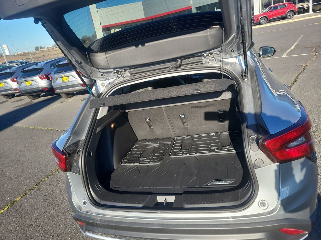 Sterling Gray Metallic 2025 Chevrolet Trax LT FWD 6-Speed Automatic 1.2L I3 DI Turbocharged DOHC 12V LEV3-ULEV70 137hp 2-Way Adjustable Front Head Restraints, 3.50 Final Drive Axle Ratio, 4-Way Manual Front Passenger Seat Adjuster, 4-Wheel Disc Brakes, 6 Speakers, 6-Speaker Audio System Feature, 6-Way Manual Driver Seat Adjuster, ABS brakes, Air Conditioning, Alloy wheels, AM/FM radio: SiriusXM, Auto High-beam Headlights, Automatic temperature control, Black Nameplate, Blackout Package, Brake assist, Bumpers: body-color, Cloth/Evotex Seat Trim, Compass, Delay-off headlights, Driver door bin, Driver vanity mirror, Dual front impact airbags, Dual front side impact airbags, Electronic Stability Control, Emergency communication system: OnStar One Essentials, Exterior Parking Camera Rear, Front and Rear All-Weather Floor Liners, Front and Rear Black Bowtie Emblems, Front anti-roll bar, Front Bucket Seats, Front Center Armrest, Front Doors Keyless Open, Front reading lights, Front wheel independent suspension, Fully automatic headlights, Heated Driver and Front Passenger Seats, Heated Power-Adjustable Outside Mirrors, Heated Steering Wheel, Illuminated entry, Interior Protection Package, Jet Black Cargo Liner, License Plate Front Mounting Package, Low tire pressure warning, LT Convenience Package, Occupant sensing airbag, Outside temperature display, Overhead airbag, Overhead console, Panic alarm, Passenger door bin, Passenger vanity mirror, Power door mirrors, Power steering, Power windows, Preferred Equipment Group 1LT, Premium audio system: Chevrolet Infotainment 3, Radio data system, Radio: AM/FM Stereo Audio System, Rear window defroster, Rear window wiper, Remote keyless entry, Security system, SiriusXM Trial Subscription, Speed control, Split folding rear seat, Spoiler, Steering wheel mounted audio controls, Tachometer, Telescoping steering wheel, Tilt steering wheel, Traction control, Trip computer, Variably intermittent wipers, Wheels: 17 Inch Gray-Painted Machined Aluminum Alloy, Wrapped Steering Wheel.28/32 City/Highway MPGAwards: * Car and Driver 10 BestCar and Driver, January 2017.
