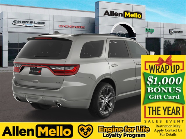 ***MUST FINANCE WITH THE DEALER******ENGINE FOR LIFE***protection for your engine. Protect your investment with the Allen Mello Engine for Life Loyalty Program.The Wrap Up $1,000 Gift Card cannot be combine with any other offer and is also only valid when purchasing without any additional discounts or rebates beyond what is listed online.How Long is the Warranty Good For? Service your oil & filter changes with Allen Mello (minimum every 6,000 miles) and Allen Mello will cover the engine for as long as you own the vehicle - unlimited time, unlimited miles.*see dealer for additional details and on specific vehicles prior to purchasing.Destroyer Gray Clearcoat 2025 Dodge Durango GT AWD 8-Speed Automatic 3.6L V6 24V VVT AWD.Allen Mello Chrysler Jeep Dodge Ram is proud to present you with another True Market Priced Vehicle. This 2025 Dodge Durango GT is loaded with the following Factory Options: AWD Blacktop Package (Black Roof Rails, Gloss Black Badges, Gloss Black Exterior Mirrors, GT Gloss Black Badging, Integrated Roof Rail Crossbars, Satin Black Dodge Tail Lamp Badge, and Wheels: 20 x 8.0 Black Noise Aluminum), Quick Order Package 2BD GT, Trailer Tow Group IV (7 & 4 Pin Wiring Harness, Blind Spot w/Trailer Detection, Class IV Receiver Hitch, Heavy-Duty Engine Cooling, Rear Load Leveling Suspension, and Trailer Brake Control), AWD, 3.45 Rear Axle Ratio, 3rd row seats: split-bench, 4-Wheel Disc Brakes, 6 Speakers, ABS brakes, Air Conditioning, Alloy wheels, AM/FM radio: SiriusXM w/360L, Apple CarPlay/Android Auto, Auto-dimming Rear-View mirror, Automatic temperature control, Brake assist, Bumpers: body-color, Cloth Bucket Seats w/Shift Insert, Compass, Delay-off headlights, Driver door bin, Driver vanity mirror, Dual front impact airbags, Dual front side impact airbags, Electronic Stability Control, Emergency communication system: Dodge Connect, Exterior Mirrors w/Heating Element, Four wheel independent suspension, Front anti-roll bar, Front Bucket Seats, Front Center Armrest w/Storage, Front dual zone A/C, Front License Plate Bracket, Front reading lights, Fully automatic headlights, Garage door transmitter, Heated door mirrors, Heated front seats, Heated steering wheel, Illuminated entry, Knee airbag, Leather steering wheel, Low tire pressure warning, Navigation System, Occupant sensing airbag, Outside temperature display, Overhead airbag, Overhead console, Panic alarm, ParkView Rear Back-Up Camera, Passenger door bin, Passenger vanity mirror, Power door mirrors, Power driver seat, Power Liftgate, Power steering, Power windows, Radio data system, Radio: Uconnect 5 Nav w/10.1 Display, Rear air conditioning, Rear anti-roll bar, Rear reading lights, Rear seat center armrest, Rear window defroster, Rear window wiper, Red Accent Stitching, Remote keyless entry, Speed control, Speed-sensing steering, Speed-Sensitive Wipers, Split folding rear seat, Spoiler, Sport steering wheel, Steering wheel mounted audio controls, Tachometer, Telescoping steering wheel, Tilt steering wheel, Traction control, Trip computer, Variably intermittent wipers, Voltmeter, and Wheels: 20 x 8.0 Fine Silver!! Discount includes a $1,000 Hospital, Military, Firefighters, Police or School Employees must show proof of employment. Price does not include tax, title, license, and document fees. Not all customers qualify for all rebates. Contact us for more information. Price includes: $2000 - 2025 National Holiday Select Inventory Bonus Cash. Exp. 01/05/2026 $2250 - 2025 National Retail Bonus Cash . Exp. 01/05/2026