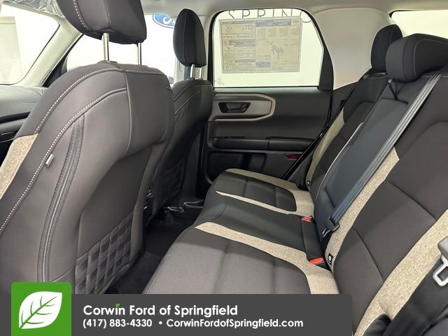 2025 Ford Bronco Sport Priced below KBB Fair Purchase Price! Factory MSRP: $34,085 $6,256 off MSRP!Big Bend 1.5L EcoBoost 4WD Desert Sand 25/30 City/Highway MPGThis Ford Bronco Sport is well equipped and includes these key features and benefits, Collision Avoidance System, Collision Warning System, Lane Keeping Assist, Touchscreen Controls, Automatic Headlights, Keyless Access with Push Button Start, Adaptive Cruise Control, Navigation System, Backup Camera, Apple CarPlay, Android Auto, Blind-Spot Monitors, Voice Recognition, Bluetooth Hands-Free, Equipment Group 200A.Based upon current new inventory shortages, deals subject to dealer approval based upon trade, loyalty, and proximity to dealership. Corwin Ford is here for you! Corwin has been family driven over 100 years! We proudly serve Springfield, Ozark, Nixa, Fair grove, Pleasant Hope, Billings, Clever, Republic, Aurora, Branson, Marshfield, and the greater Springfield Missouri area. Corwin Price does not include Admin fee of $604 or optional Pulse Brake System $395 or optional Data Dots $299. Price does NOT include Tax, Title, License, or $565 Administrative Fee. Subject to availability. Customer must qualify for customer incentives, See Dealer for Details. Price is after all Certificate Incentives.$1000 - Retail Customer Cash. Exp. 02/02/2026 $2000 - Retail Customer Cash. Exp. 03/31/2026
