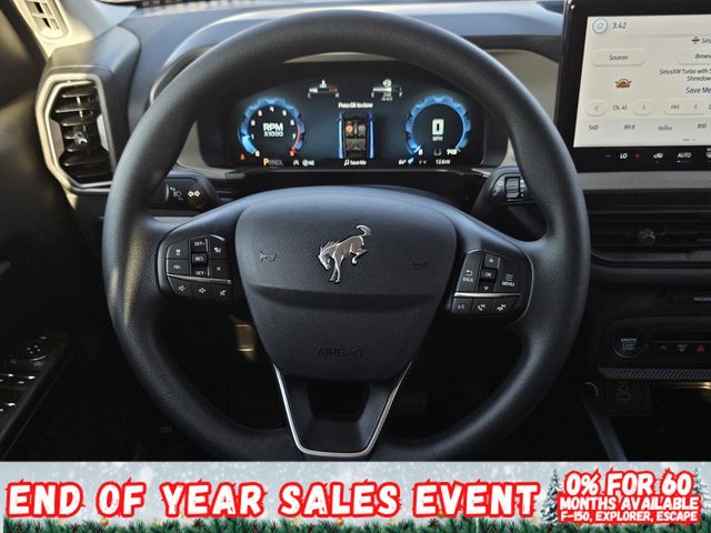 Desert Sand 2025 Ford Bronco Sport Big Bend 4WD 1.5L EcoBoost 25/30 City/Highway MPGEquipment Group 200A, 4-Wheel Disc Brakes, 6 Speakers, ABS brakes, Air Conditioning, Alloy wheels, AM/FM radio: SiriusXM, AM/FM Stereo, Auto High-beam Headlights, Automatic temperature control, Brake assist, Cloth w/Easy-to-Clean Front Bucket Seats, Compass, Delay-off headlights, Driver door bin, Driver vanity mirror, Dual front impact airbags, Dual front side impact airbags, Electronic Stability Control, Emergency communication system: SYNC 4 911 Assist, Four wheel independent suspension, Front anti-roll bar, Front Bucket Seats, Front Center Armrest, Front License Plate Bracket, Front reading lights, Fully automatic headlights, Heated door mirrors, Illuminated entry, Knee airbag, Low tire pressure warning, Occupant sensing airbag, Outside temperature display, Overhead airbag, Overhead console, Panic alarm, Passenger door bin, Passenger vanity mirror, Power door mirrors, Power steering, Power windows, Radio data system, Rear anti-roll bar, Rear Parking Sensors, Rear reading lights, Rear seat center armrest, Rear window defroster, Rear window wiper, Remote keyless entry, Security system, SiriusXM, Speed control, Speed-sensing steering, Speed-Sensitive Wipers, Split folding rear seat, Steering wheel mounted audio controls, SYNC 4 w/Enhanced Voice Recognition, Tachometer, Telescoping steering wheel, Tilt steering wheel, Traction control, Trip computer, Variably intermittent wipers, and Wheels: 17 Carbonized Gray-Painted Aluminum. Price includes: $1500 - Retail Bonus Cash $500 - Retail Bonus Cash