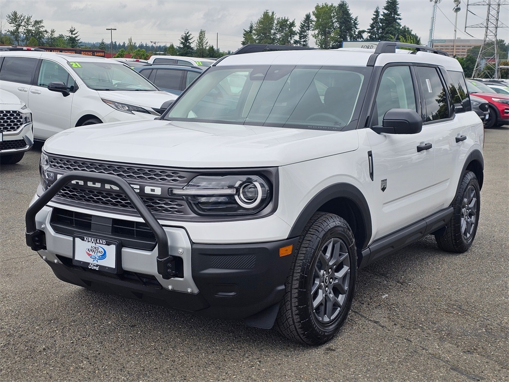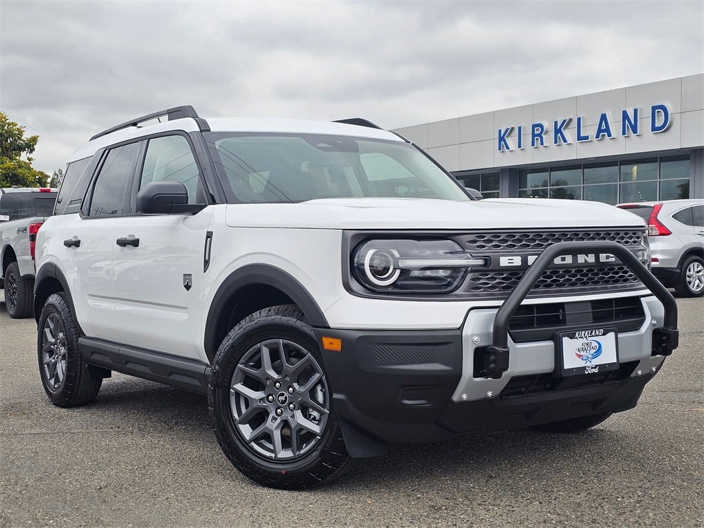 2025 Ford Bronco Sport Big Bend1.5L EcoBoost 8-Speed Automatic 4WD 4D Sport Utility Oxford White 110V/400W AC Power Outlet, 2nd Row Carpeted Seatback, 4-Wheel Disc Brakes, 6 Speakers, ABS brakes, Air Conditioning, Alloy wheels, AM/FM radio: SiriusXM, AM/FM Stereo, Auto High-beam Headlights, Automatic temperature control, Auxiliary Switches & Wiring, Black Diamond Off-Road Package, Brake assist, Brush Guard, Cargo Management System (Shelf/Divider/Table), Cargo Mat, Class II Trailer Tow Pack w/Trailer Sway Control, Cloth w/Easy-to-Clean Front Bucket Seats, Compass, Delay-off headlights, Driver door bin, Driver vanity mirror, Dual front impact airbags, Dual front side impact airbags, Electronic Stability Control, Emergency communication system: SYNC 4 911 Assist, Equipment Group 200A, Fender Tie Downs, Four wheel independent suspension, Front & Rear Black Bumpers, Front anti-roll bar, Front Bucket Seats, Front Center Armrest, Front License Plate Bracket, Front reading lights, Fully automatic headlights, Heated door mirrors, Illuminated entry, Interior Grab Handle, Knee airbag, Low tire pressure warning, Occupant sensing airbag, Outside temperature display, Overhead airbag, Overhead console, Panic alarm, Passenger door bin, Passenger vanity mirror, Power door mirrors, Power steering, Power windows, Radio data system, Rear anti-roll bar, Rear Parking Sensors, Rear reading lights, Rear seat center armrest, Rear window defroster, Rear window wiper, Recovery Hooks, Remote keyless entry, Security system, SiriusXM, Speed control, Speed-sensing steering, Speed-Sensitive Wipers, Split folding rear seat, Steering wheel mounted audio controls, SYNC 4 w/Enhanced Voice Recognition, Tachometer, Telescoping steering wheel, Tilt steering wheel, Traction control, Trip computer, Variably intermittent wipers, Wheels: 17 Carbonized Gray Painted Aluminum, Wheels: 17 Carbonized Gray-Painted Aluminum. To see more quality vehicles like this one right here just click on http://www.fordofkirkland.com or dial (425) 500-1074. Prices good through 5-31-2025. Kirkland Price includes:$1000 - SUV Spike Retail Bonus Cash $3000 - Retail Customer Cash