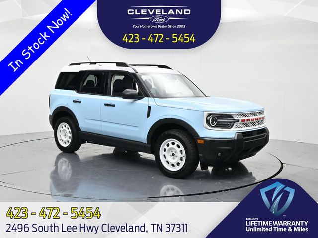$6,024 off MSRP! Blue 2025 Ford Bronco Sport HeritageThis vehicle includes the following features: Convenience Package (Front Driver/Passenger Seat Back Map Pockets, Heated 8-Way Power Driver's Seat, LED Fog Lamps, Premium Wrapped Steering Wheel, and Universal Garage Door Opener (UGDO)), Equipment Group 250A, 4-Wheel Disc Brakes, 6 Speakers, ABS brakes, Air Conditioning, Alloy wheels, AM/FM radio: SiriusXM, AM/FM Stereo, Auto High-beam Headlights, Automatic temperature control, Brake assist, Cargo Management System (Shelf/Divider/Table), Compass, Delay-off headlights, Driver door bin, Driver vanity mirror, Dual front impact airbags, Dual front side impact airbags, Electronic Stability Control, Emergency communication system: SYNC 4 911 Assist, Four wheel independent suspension, Front & Rear Floor Liners w/o Carpet Mats, Front anti-roll bar, Front Bucket Seats, Front Center Armrest, Front License Plate Bracket, Front reading lights, Fully automatic headlights, Heated door mirrors, Illuminated entry, Knee airbag, Low tire pressure warning, Occupant sensing airbag, Outside temperature display, Overhead airbag, Overhead console, Panic alarm, Passenger door bin, Passenger vanity mirror, Plaid Cloth Front Bucket Seats, Power door mirrors, Power Moonroof, Power steering, Power windows, Radio data system, Rear anti-roll bar, Rear Parking Sensors, Rear reading lights, Rear seat center armrest, Rear window defroster, Rear window wiper, Remote keyless entry, Security system, SiriusXM, Speed control, Speed-sensing steering, Speed-Sensitive Wipers, Split folding rear seat, Steering wheel mounted audio controls, SYNC 4 w/Enhanced Voice Recognition, Tachometer, Telescoping steering wheel, Tilt steering wheel, Traction control, Trip computer, Variably intermittent wipers, and Wheels: 17 Oxford White-Painted Aluminum.Cleveland Ford believes in MARKET VALUE PRICING for all vehicles, and this is to your advantage. We use real-time internet comparisons from 1,000's of websites ensure our pricing are to constantly adjust prices to provide ALL BUYERS the BEST PRICE possible. We do not mark them up just to mark them down! We utilize state-of-the-art technology to constantly monitor pricing trends in order to offer our shoppers the best competitive pricing and value. Our entire team is committed to helping you buy a car the way we would want to buy a car! We sell and service all makes and models of pre-owned/used vehicles, used cars, used trucks, used sport utility, 10k under used cars, Ford, Chevrolet/Chevy, Honda, Toyota, Porsche, Land Rover, Jaguar, INFINITI, Audi, Nissan, Mazda, Hyundai, Chrysler, Jeep, Dodge, Ram, SRT, Mitsubishi, Lexus, Kia, Volkswagen, Mini, BMW, Mercedes, Fiat, Volvo, GMC, Cadillac, Lincoln as well as other brands. We proudly serve Tennessee, Virginia, North Carolina, Georgia, Cleveland, Kingsport, Bristol, Johnson City, Knoxville, Greenville, Elizabethton, Ashville, Ooltewah, Collegedale, Athens, Sweetwater, Charleston, Murphy, Jasper, Dalton, Ringgold, Hixson, Soddy Daisy, East Ridge, Fort Oglethorpe, and Red Bank. Please call with any and all questions! The number for our Internet Department is 844-450-8710. We look forward to helping you in any way possible!Mecklenburg, NC, Fulton, GA, Gwinnett, GA, Shelby, TN, Hamilton, OH, Cobb, GA, Jefferson, KY, DeKalb, GA, Davidson, TN, Jefferson, AL Trousdale, TN, Bryan, GA, Jackson, GA, Forsyth, GA, Dawson, GA, Wilson, TN, Lancaster, SC, Williamson, TN, Maury, TN, Effingham, GA. Not all Customers May Qualify for all Rebates. All prices include FMCC financing. Listed Price includes:$2000 - Retail Customer Cash. Exp. 03/31/2026 $750 - Retail Customer Cash. Exp. 03/31/2026