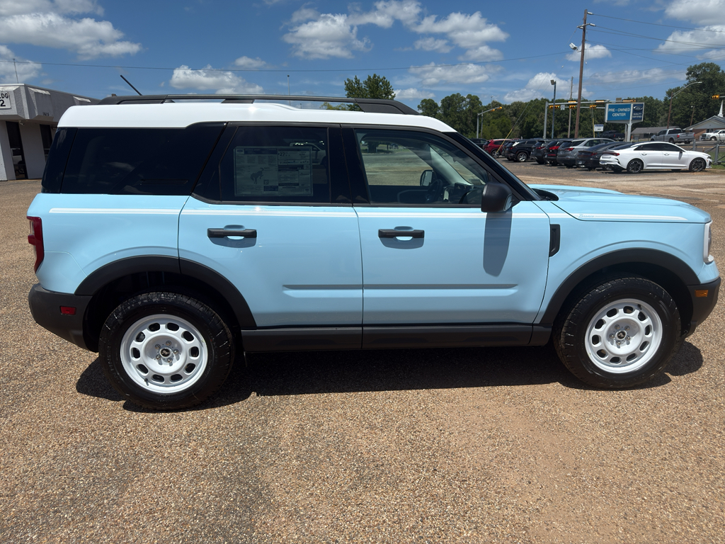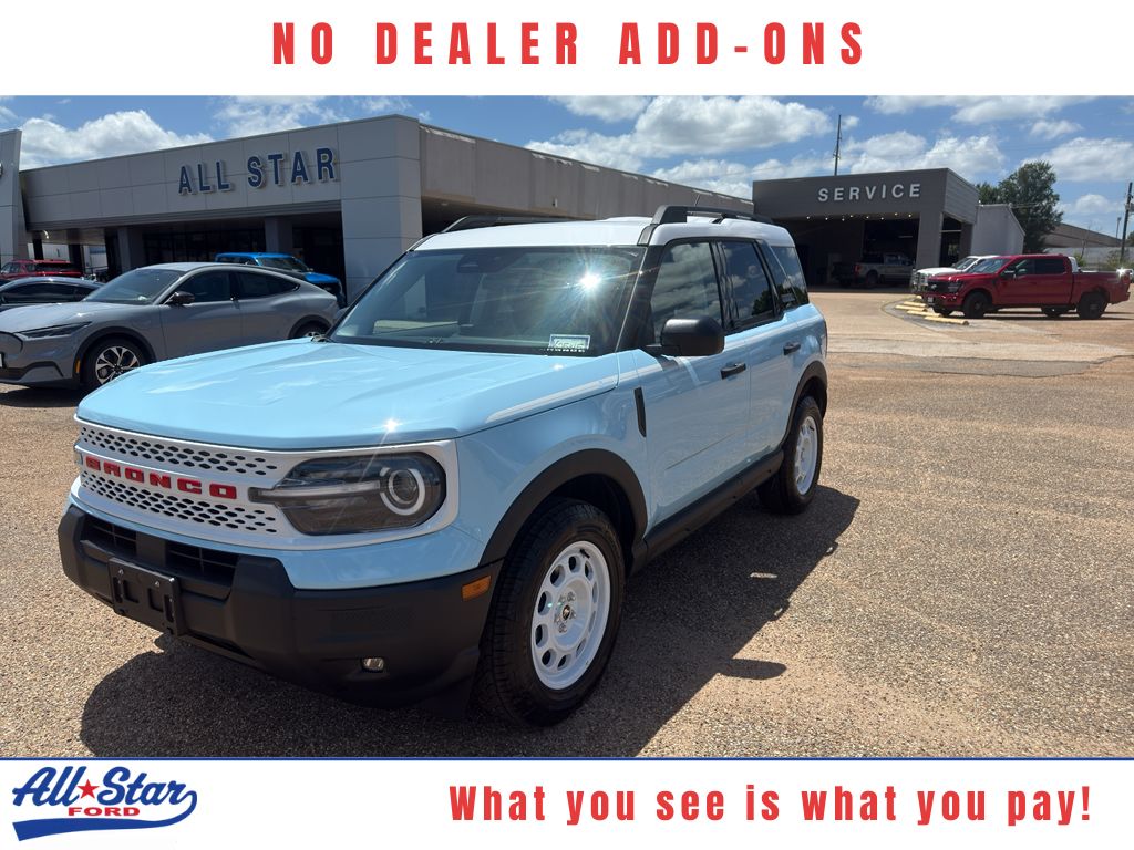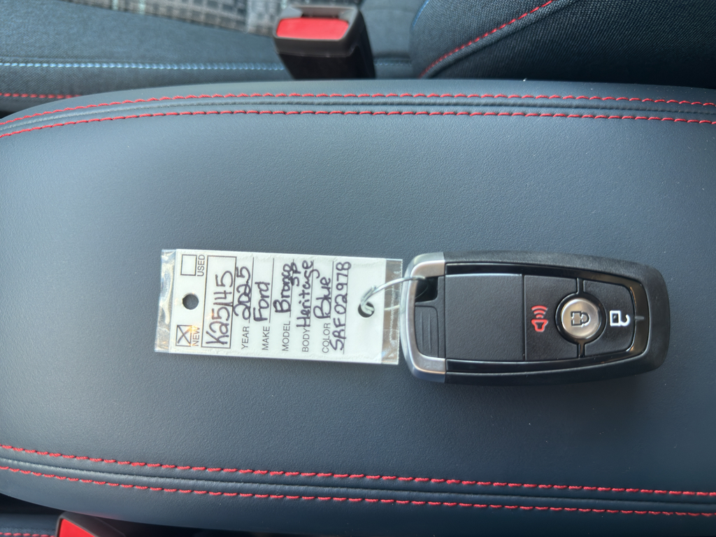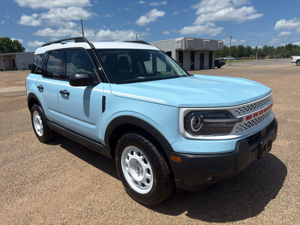 <b>Vehicle Details</b><br>Unleash your adventurous spirit with the 2025 Ford Bronco Sport Heritage' a vehicle that effortlessly combines rugged capability with modern sophistication. This iconic SUV is ready to conquer any terrain' thanks to its robust 4WD system and efficient 3-cylinder' 1.5L engine' ensuring you get the perfect balance of power and fuel efficiency for your journeys' both on and off the beaten path. Step inside and experience a cabin designed with the adventurer in mind. The intuitive technology suite includes Hands-Free Bluetooth' Adaptive Cruise Control' Android Auto' and Apple CarPlay' ensuring that you stay connected and in control' no matter where the road takes you. The Back-Up Camera provides peace of mind and enhanced safety' making even the trickiest parking situations a breeze. The 2025 Ford Bronco Sport Heritage is not just about performance and technology; it also boasts a design that pays homage to its legendary lineage. With its bold stance and timeless styling' this SUV is sure to turn heads wherever you go. Whether you're navigating city streets or exploring uncharted trails' the 2025 Ford Bronco Sport Heritage is your ticket to adventure. Embrace the legacy and make every drive an unforgettable journey. Discover the thrill of the open road and the freedom that comes with driving a true icon.<br><br><b>Equipment</b><br>This 2025 Ford Bronco Sport has automated speed control that adjusts to maintain a safe following distance' enhancing highway driving convenience. The Ford Bronco Sport comes equipped with Android Auto for seamless smartphone integration on the road. The Ford Bronco Sport keeps you comfortable with Auto Climate. The state of the art park assist system will guide you easily into any spot. Protect this mid-size suv from unwanted accidents with a cutting edge backup camera system. Start it from inside with remote start. Bluetooth technology is built into this model' keeping your hands on the steering wheel and your focus on the road. Apple CarPlay: Seamless smartphone integration for this vehicle - stay connected and entertained on the go! When you encounter slick or muddy roads' you can engage the four wheel drive on this vehicle and drive with confidence. Impresses the most discerning driver with the deep polished blue exterior on this mid-size suv.<br><br><b>Packages</b><br>Convenience Package: Premium Wrapped Steering Wheel; Heated 8-Way Power Driver's Seat; Front Driver/passenger Seat Back Map Pockets; Universal Garage Door Opener (UGDO); LED Fog Lamps. Equipment Group 250A: 17 Oxford White-Painted Aluminum Wheels; Plaid Cloth Front Bucket Seats; 8-Speed Automatic Transmission; 225/65R17 All Terrain Tires; AM/FM Stereo; 1.5L EcoBoost Engine. Robins Egg Blue. Keyless Entry Keypad. **Equipment listed is based on original vehicle build and subject to change. Please confirm the accuracy of the included equipment by calling the dealer prior to purchase.**