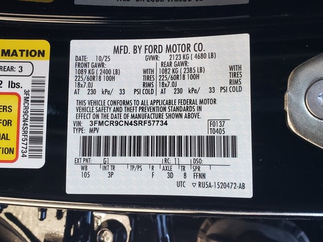 R9CH BRONCO SP OUTER BANKS 4X4 2025 MODEL YEAR G1 SHADOW BLACK 3P EBONY ROAST PREMIUM TRIM .EQUIPMENT GROUP 300A 99N .1.5L ECOBOOST ENGINE 448 .8-SPD AUTO TRANSMISSION 225/60 R18 A/S BSW TIRES JOB #3 ORDER 425 50 STATE EMISSIONS 648 18 MACH FACE EB BLK ALUM WHL 96T OUTER BANKS TECH PACKAGE .HD RADIO 50C FLR LINERS FR-RR W/O CRPT MTS 52B SUPPLEMENTAL PTC HEATER 90A CARGO MANAGEMENT SYSTEM 153 FRONT LICENSE PLATE BRACKET