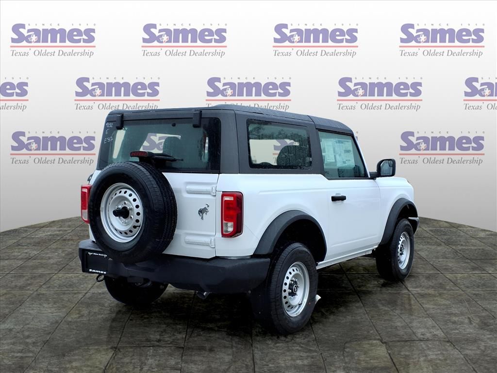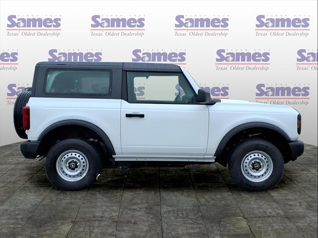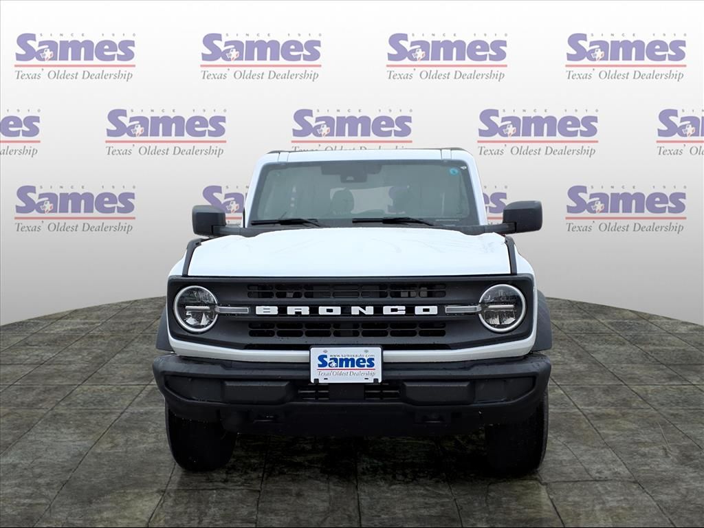 This 2025 Ford Bronco in Oxford White comes with the following features: 2.3L EcoBoost I-4 10-Speed Automatic 4WD Equipment Group 101A, 4-Wheel Disc Brakes, 4.46 Axle Ratio, 7 Speakers, ABS brakes, Air Conditioning, AM/FM radio: SiriusXM with 360L, AM/FM Stereo, Auto High-beam Headlights, Brake assist, Cloth Bucket Seats, Compass, Convertible HardTop, Convertible roof lining, Delay-off headlights, Driver door bin, Driver vanity mirror, Dual front impact airbags, Dual front side impact airbags, Electronic Stability Control, Emergency communication system: 911 Assist, Exterior Parking Camera Rear, Front anti-roll bar, Front Bucket Seats, Front Center Armrest, Front License Plate Bracket, Front reading lights, Front wheel independent suspension, Fully automatic headlights, Glass rear window, Heated door mirrors, Illuminated entry, Integrated roll-over protection, Low tire pressure warning, Occupant sensing airbag, Outside temperature display, Overhead airbag, Overhead console, Panic alarm, Passenger door bin, Passenger vanity mirror, Power door mirrors, Power steering, Power windows, Radio data system, Rear window defroster, Rear window wiper, Remote keyless entry, Security system, SiriusXM w/360L, Speed control, Split folding rear seat, Steering wheel mounted audio controls, SYNC 4, Tachometer, Telescoping steering wheel, Tilt steering wheel, Traction control, Trip computer, Variably intermittent wipers, and Wheels: 16 Bright Polished Silver-Painted Steel.Sames Auto Group stores have been in business for over 115 years, as part of the Oldest Auto Group in Texas we're committed to providing exceptional service before, during, and after your purchase. Our expert team at Sames Ford of Bastrop will ensure you drive away completely satisfied. Schedule your virtual consultation or test drive today. No hassle remote delivery to Houston, Austin and San Antonio and the rest of Texas available upon request. Price includes: $2500 - Retail Customer Cash. Exp. 03/31/2026