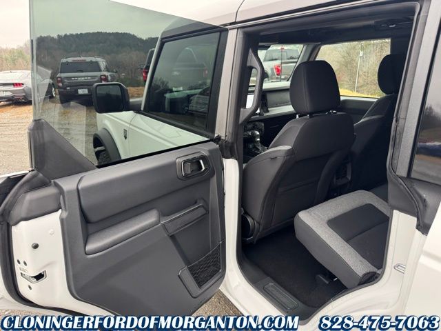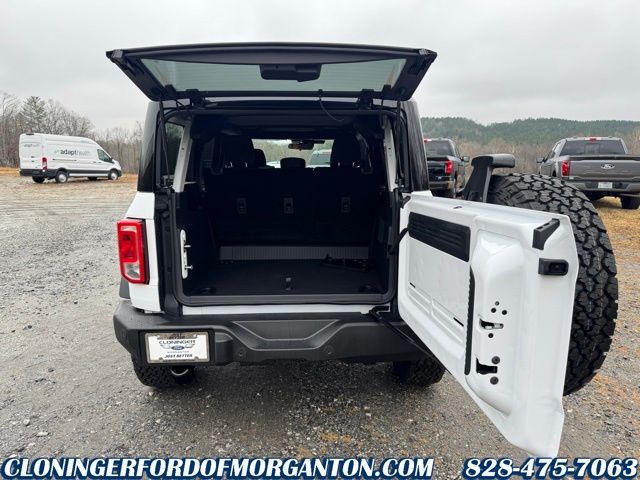 Oxford White 2025 Ford Bronco Big Bend 2-Door Intelligent Access w/Lock/Unlock, 4.46 Axle Ratio, Ambient Footwell Lighting, Auto High-beam Headlights, Black Appearance Package, Black Molded-In-Color Door Handles, Black Molded-In-Color Fender Flares, Black Molded-In-Color Sideview Mirror Caps, Black-Painted Molded-In-Color Grille, BLIS Blind Spot Information System, Brake assist, Connected Navigation, Dr & Pass Illuminated Sliding Visor Vanity Mirrors, Dual Smart Charging USB Ports, Dual-Zone Electronic Automatic Temperature Control, Electronic Stability Control, Equipment Group 222A Mid Package, Front Row Heated Seats, Fully automatic headlights, Hard Top Sound Deadening Headliner, Power Outlet - Back Side of Center Floor Console, Rear Parking Sensors, Rear-Window Defroster & Washer, Remote keyless entry, Shadow Black Painted Hard Top, SiriusXM w/360L, SYNC 4, Wheels: 17 Carbonized Gray-Painted Aluminum. 4WD 10-Speed Automatic 2.3L EcoBoost I-4Black Appearance Package (Black Molded-In-Color Door Handles, Black Molded-In-Color Fender Flares, Black Molded-In-Color Sideview Mirror Caps, and Black-Painted Molded-In-Color Grille), Equipment Group 222A Mid Package (2-Door Intelligent Access w/Lock/Unlock, Ambient Footwell Lighting, Connected Navigation, Dr & Pass Illuminated Sliding Visor Vanity Mirrors, Dual Smart Charging USB Ports, Dual-Zone Electronic Automatic Temperature Control, Front Row Heated Seats, Power Outlet - Back Side of Center Floor Console, and Rear Parking Sensors), 4.46 Axle Ratio, Auto High-beam Headlights, BLIS Blind Spot Information System, Brake assist, Electronic Stability Control, Fully automatic headlights, Hard Top Sound Deadening Headliner, Rear-Window Defroster & Washer, Remote keyless entry, Shadow Black Painted Hard Top, SiriusXM w/360L, SYNC 4, Wheels: 17 Carbonized Gray-Painted Aluminum, 4-Wheel Disc Brakes, 7 Speakers, ABS brakes, Air Conditioning, Alloy wheels, AM/FM radio: SiriusXM with 360L, AM/FM Stereo, Auto High-Beam Headlamps, Cloth Bucket Seats, Compass, Delay-off headlights, Driver door bin, Driver vanity mirror, Dual front impact airbags, Dual front side impact airbags, Emergency communication system: 911 Assist, Exterior Parking Camera Rear, Front anti-roll bar, Front Bucket Seats, Front Center Armrest, Front License Plate Bracket, Front reading lights, Front wheel independent suspension, Heated door mirrors, Illuminated entry, Integrated roll-over protection, Lane-Keeping System, Leather Shift Knob, Low tire pressure warning, Occupant sensing airbag, Outside temperature display, Overhead airbag, Overhead console, Panic alarm, Passenger door bin, Passenger vanity mirror, Power door mirrors, Power steering, Power windows, Pre-Collision Assist w/Automatic Emergency Braking, Radio data system, Rear-View Camera, Security system, Speed control, Split folding rear seat, Steering wheel mounted audio controls, Tachometer, Telescoping steering wheel, Tilt steering wheel, Traction control, Trip computer, and Variably intermittent wipers. Price includes the following rebates:$1000 - Final Days Mega Bonus Cash. Exp. 01/02/2026 $2000 - Retail Bonus Cash. Exp. 01/05/2026