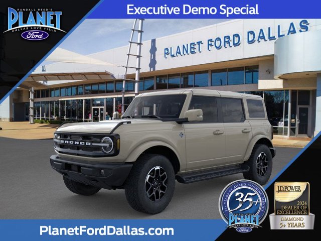 EQUIPMENT GROUP 314A LUX PACKAGE -inc: Evasive Steering Assist, Adaptive Cruise Control, Information on Demand Panel, Radio: B&O Sound System by Bang & Olufsen, 12 speakers including subwoofer, Front Parking Sensors, 360-Degree Camera, Universal Garage Door Opener, Sideview Mirrors, LED approach lamps and LED spotlight, ENGINE: 2.3L ECOBOOST I-4 (STD), Engine: 2.3L EcoBoost I-4, Back-Up Camera & Sensors, Back-Up Camera, Remote Keyless Entry w/Integrated Key Transmitter, Illuminated Entry, Illuminated Ignition Switch and Panic Button, MyKey System (Top Speed Limiter, Volume Limiter, Early Low Fuel Warning), Auto Halogen High-Beam Headlights, Wireless Phone Connectivity, Wheels: 18 Bright Machined Aluminum -inc: Black high gloss-painted. This Ford Bronco has a dependable 2.3L EcoBoost I-4 Engine engine powering this Automatic transmission.*This Ford Bronco Outer Banks Has Everything You Want *Transmission w/Driver Selectable Mode, Sequential Shift Control and Oil Cooler, Tracker System, Towing Equipment -inc: Trailer Sway Control, Tires: P255/70R18 A/T -inc: full size spare tire w/TPMS, Tire Specific Low Tire Pressure Warning, Tailgate/Rear Door Lock Included w/Power Door Locks, SYNC 4 -inc: 12 LCD capacitive touchscreen w/swipe capability, wireless phone connection, cloud connected, 911 Assist, wireless Apple CarPlay and Android Auto compatibility, digital owner's manual and conversational voice command recognition, Swing-Out Rear Cargo Access, SULEV Emissions System, Solid Axle Rear Suspension w/Coil Springs, Smart Device Remote Engine Start, Smart Device Integration, Single Stainless Steel Exhaust, Side Steps, Short And Long Arm Front Suspension w/Coil Springs, Safety Canopy System Curtain 1st And 2nd Row Airbags, Removable Rear Window, Regenerative 250 Amp Alternator, Radio: AM/FM Stereo -inc: 7 speakers including subwoofer, Radio w/Seek-Scan, Clock, Speed Compensated Volume Control, Steering Wheel Controls and Radio Data System.* Stop By Today *For a must-own Ford Bronco come see us at Planet Ford Dallas Love Field, 3333 Inwood Rd, Dallas, TX 75235. Just minutes away!*Open Recall Disclaimer*Vehicles may be subject to an open recall for safety issues that have not been repaired. Visit the NHTSA VIN Look-up web-site to verify any potential recalls, and any potential safety concerns affecting this vehicle. (https://www.nhtsa.gov/recalls)*Used Cars, Trucks, & SUVs for Sale at Planet Ford Dallas*This vehicle is available for sale in Dallas, TX at Planet Ford Dallas. Randall Reed's Planet Ford Dallas has been the preferred Dallas Ford Dealer for 30+ years and is conveniently located on the big, big corner of Inwood Lemmon in Dallas, TX. Ready to come in for a test drive? Set your navigation to take you straight to Planet Ford Dallas, 3333 Inwood Road, Dallas, TX 75235! We'll see you soon!