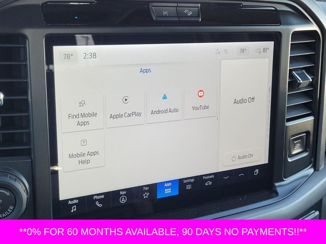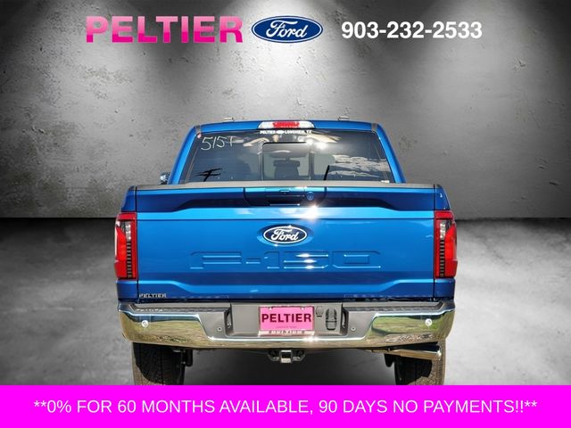 Atlas Blue Metallic 2025 Ford F-150 XLT 4WD 3.5L PowerBoost Full-Hybrid V63.5L PowerBoost Full-Hybrid V6, 4WD.Bed Utility Package (4 Pickup Box Tie-Down Plates, LED Box Lighting, and Tailgate Step w/Tailgate Work Surface), Equipment Group 302A Mid (360 Degree Camera, 400W Cab & Bed Outlets, 6 Angular Bright Anodized Step Bar, Adaptive Cruise Control w/Stop & Go, Auto-Dimming Rear-View Mirror, Black Painted Grille w/Chrome Center Bar, Chrome Door & Tailgate Handles, Chrome Single-Tip Exhaust, Cloth 40/Console/40 Front Seats, Connected Navigation, Driver State Detection, Dual-Zone Electronic Automatic Temperature Control, Evasive Steering Assist, Ford Co-Pilot360 Assist 2.0, Front Parking Sensors, Heated Front Seats, Intelligent Access w/Push Button Start, Power Glass Heated Sideview Mirrors, Power-Sliding Rear Window, Remote Start System w/Remote Tailgate Release, Towing Technology, and Wrapped Steering Wheel), FX4 Off-Road Package, Mobile Office Package (Console Worksurface and Partitioned Lockable Rear Storage), Tow/Haul Package, 3.5L PowerBoost Full-Hybrid V6, 4WD, 4-Wheel Disc Brakes, 6 Speakers, ABS brakes, Air Conditioning, Alloy wheels, AM/FM radio: SiriusXM with 360L, Auto High-beam Headlights, BlueCruise (Equipment + 1-Year Plan), Brake assist, Bumpers: chrome, Chrome wheels, Cloth 40/20/40 Front Seat, Compass, Delay-off headlights, Driver door bin, Driver vanity mirror, Dual front impact airbags, Dual front side impact airbags, Electronic Stability Control, Emergency communication system: SYNC 4 911 Assist, Front anti-roll bar, Front Center Armrest, Front fog lights, Front License Plate Bracket, Front reading lights, Front wheel independent suspension, Fully automatic headlights, Heated door mirrors, Illuminated entry, Internet access capable: FordPass Connect 5G, Low tire pressure warning, Occupant sensing airbag, Outside temperature display, Overhead airbag, Overhead console, Panic alarm, Passenger door bin, Passenger vanity mirror, Power door mirrors, Power steering, Power windows, Radio data system, Radio: AM/FM Stereo w/SiriusXM 360L, Rear Parking Sensors, Rear reading lights, Rear step bumper, Rear window defroster, Remote keyless entry, Security system, Speed control, Split folding rear seat, Steering wheel mounted audio controls, SYNC 4 w/Enhanced Voice Recognition, Tachometer, Telescoping steering wheel, Tilt steering wheel, Tough Bed Spray-In Bedliner, Traction control, Trip computer, Variably intermittent wipers, Voltmeter, Wheels: 18 Chrome-Like PVD, and Wheels: 20 Chrome-Like PVD.