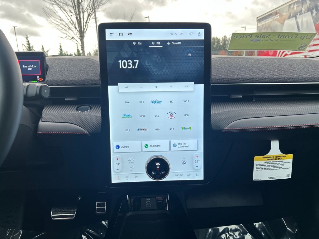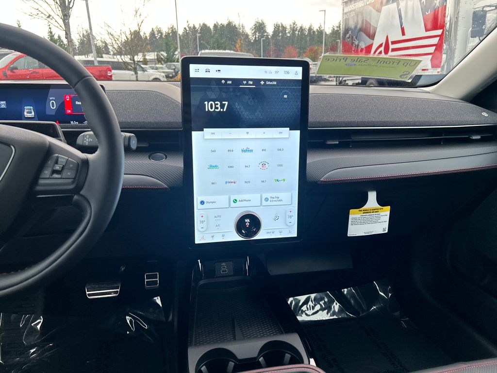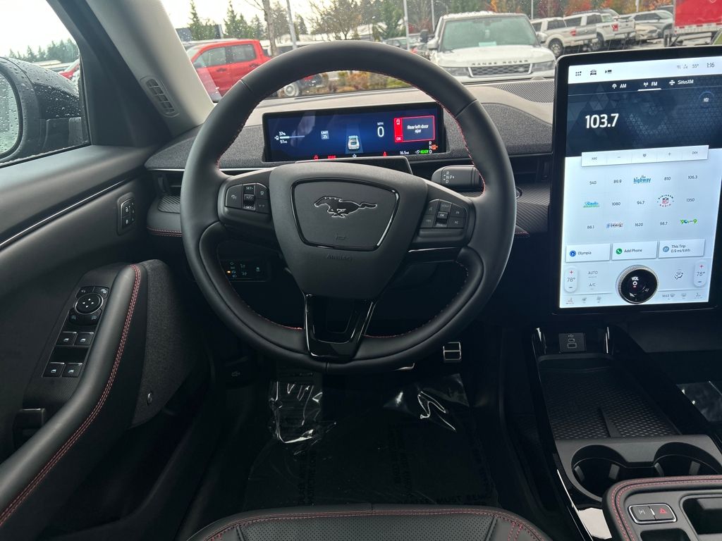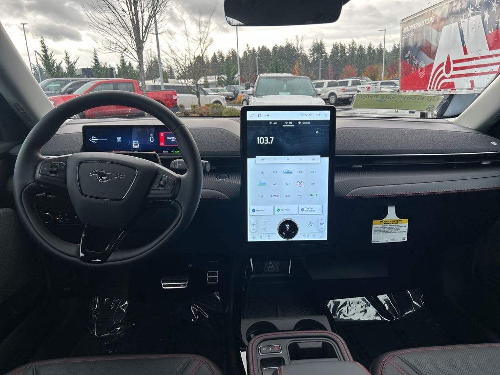 Great Gas Mileage!!, 10 Speakers, 1st & 2nd Row Floor Liners w/o Carpet Mats, 4-Wheel Disc Brakes, ABS brakes, Air Conditioning, Alloy wheels, AM/FM radio: SiriusXM with 360L, Apple CarPlay/Android Auto, Auto High-beam Headlights, Auto-dimming Rear-View mirror, Automatic temperature control, Brake assist, Brembo Branded Front Brakes, Bumpers: body-color, Cargo Area Cover, Cargo Floor Liner, Compass, Delay-off headlights, Driver door bin, Driver vanity mirror, Dual front impact airbags, Dual front side impact airbags, Electronic Stability Control, Emergency communication system: 911 Assist, Equipment Group 300A Standard Package, Exterior Parking Camera Rear, Four wheel independent suspension, Front anti-roll bar, Front Bucket Seats, Front Center Armrest, Front dual zone A/C, Front License Plate Bracket, Front reading lights, Fully automatic headlights, Garage door transmitter, Heated door mirrors, Heated front seats, Heated steering wheel, Heated/Ventilated Perforated ActiveX Bucket Seats, Illuminated entry, Interior Protection Package, Internet access capable: FordPass Connect, Knee airbag, Low tire pressure warning, Memory seat, Mobile Power Cord (120V/240V), Navigation system: Connected Navigation, Occupant sensing airbag, Outside temperature display, Overhead airbag, Overhead console, Panic alarm, Panoramic Fixed-Glass Roof, Passenger door bin, Passenger vanity mirror, Power door mirrors, Power driver seat, Power Liftgate, Power passenger seat, Power steering, Power windows, Radio data system, Radio: B&O Sound System by Bang & Olufsen, Rain sensing wipers, Rear anti-roll bar, Rear seat center armrest, Rear side impact airbag, Rear window defroster, Rear window wiper, Red Painted Front & Rear Brake Calipers, Remote keyless entry, Security system, SiriusXM w/360L, Speed control, Speed-sensing steering, Speed-Sensitive Wipers, Split folding rear seat, Spoiler, Sport Appearance Package, Sport Pedals, Steering wheel mounted audio controls, SYNC 4A w/Enhanced Voice Recognition, Telescoping steering wheel, Tilt steering wheel, Traction control, Trip computer, Turn signal indicator mirrors, Unique Front Fascia, Variably intermittent wipers, Ventilated front seats, Wheels: 19 Bright Machined-Face Aluminum, Wheels: 19 Monochromatic High Gloss Black-Painted. Premium 103/94 City/Highway MPG Dual Electric Motor G1 Shadow BlackWhy Mullinax Ford of Olympia? Getting your next vehicle from Mullinax is car buying the way it should be: fun, informative and fair.Here are our promises:* Our Best Price First, Pure and Simple* Commission Free, Information Rich Sales People* One Massive Inventory* Comprehensive Service* No Hassle Sell or Trade Any Car* Pressure Free Road TestNo Hassle, No Haggle, Up Front Pricing - A NEW Way of Purchasing a Vehicle! Price includes: $1000 - Retail Bonus Cash. Exp. 03/31/2026 $2000 - EV Public Charging Credit(FPP Alt.). Exp. 03/31/2026 $4000 - Retail Customer Cash. Exp. 03/31/2026