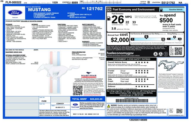 ====== Schomp Ford Vehicle Description: Ford Mustang ======Welcome to Schomp Ford, where we are dedicated to establishing lasting relationships with our customers that go beyond the sale of a vehicle. Whether you are in the market for a stylish sedan, a versatile SUV, or a powerful truck, our committed team is here to guide you every step of the way. As a proud CarFax Top-Rated Dealer, we strive to uphold our exceptional standard of customer service that has earned us this distinction year after year.Experience simplicity and transparency with our renowned One Price. One Person. One Hour. sales process, eliminating the hassle of lengthy negotiations and saving you time. With the support of a dedicated Client Advisor, you can expect a seamless journey from selecting your vehicle to securing financing.Vehicle Details: * *Make:* FORD * *Model:* Mustang * *Body Style:* ECOBOOST PREMIUM FASTBACK * *Color:* CARBONIZED GRAY METALLIC * *Engine:* 2.3L 4-Cylinder Ford 4V * *Transmission:* Automatic * *MPG:* 21 city / 32 highway * *Odometer:* 5 milesVehicle Features: * *Safety:* Standard ABS, Airbags in 1st Row (Driver and Passenger), Knee Airbags, Side Airbags, Blind Spot Monitor, Rear Cross Traffic Alert, Lane Departure Warning, Forward Collision Warning, Pedestrian Automatic Emergency Braking * *Technology:* LED Low Beam Headlights, Direct TPMS, Daytime Running Lights * *Convenience:* Manual Seat Belts, Keyless Ignition, Rear Visibility System, Park AssistFor more accurate equipment details, please contact us before making a purchase. We are here to assist you in finding the perfect vehicle that suits your needs and preferences.