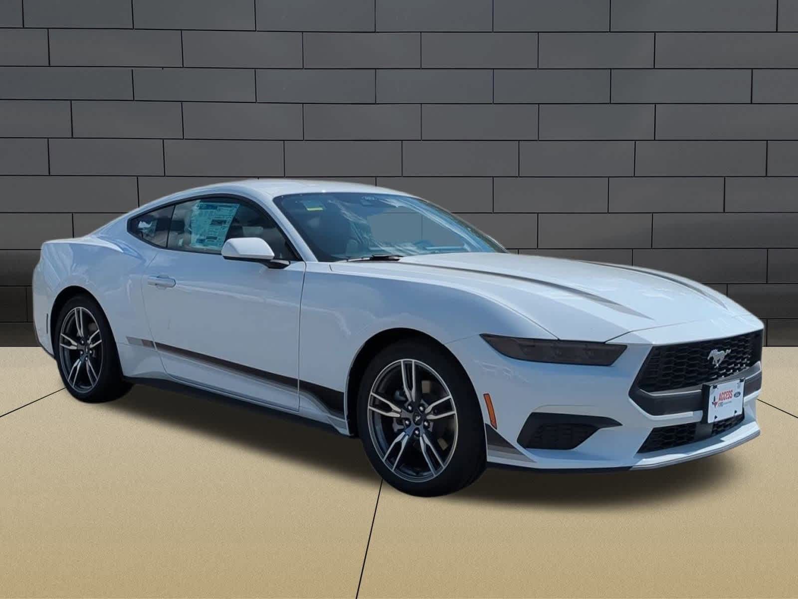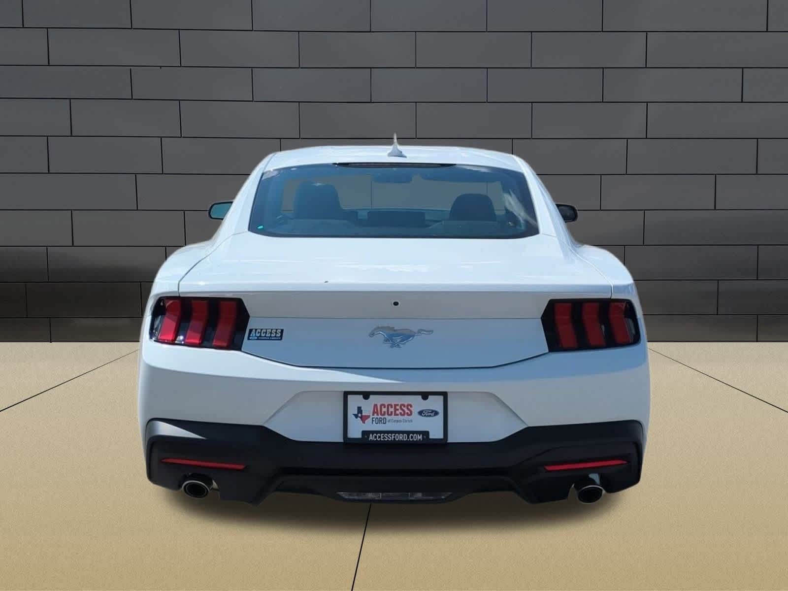 Oxford White exterior and Black Onyx interior. EQUIPMENT GROUP 101A HIGH PACKAGE, TRANSMISSION: 10-SPEED AUTOMATIC, MINI SPARE WHEEL & TIRE, WHEEL & STRIPE PACKAGE, Turbo Charged Engine, Back-Up Camera, iPod/MP3 Input. READ MORE!<br /><br />KEY FEATURES INCLUDE<br />Back-Up Camera, Turbocharged, iPod/MP3 Input Rear Spoiler, MP3 Player, Onboard Communications System, Keyless Entry, Steering Wheel Controls, Electronic Stability Control, Bucket Seats. <br /><br />OPTION PACKAGES<br />EQUIPMENT GROUP 101A HIGH PACKAGE SiriusXM w/360L & HD Radio, a three (3)-month prepaid subscription, Service is not available in Alaska and Hawaii, Note: Trial length and service availability may vary by model, model year or trim, Details: SiriusXM audio and data services each require a subscription sold separately, or as a package, by Sirius XM Radio Inc, Your SiriusXM service will automatically stop at the end of your trial unless you decide to subscribe, If you decide to continue service after your trial, the subscription plan you choose will automatically renew thereafter and you will be charged according to your chosen payment method at then-current rates, Fees and taxes apply, To cancel you must call SiriusXM at 1-866-635-2349, See SiriusXM Customer Agreement for complete terms at, WHEEL & STRIPE PACKAGE Tires: 19, Wheels: 19 x 8.5 Machined-Face Aluminum, tarnished dark-painted pockets, MINI SPARE WHEEL & TIRE Replaces tire inflator and sealant kit, TRANSMISSION: 10-SPEED AUTOMATIC selectable drive modes (STD). 2025 Ford Mustang with Oxford White exterior and Black Onyx interior features a 4 Cylinder Engine with 315 HP at 5000 RPM*. <br /><br />WHY BUY FROM US<br />If youre in the market for a vehicle, youve come to the right place. The staff at Access Ford Lincoln of Corpus Christi is committed to helping you find the right vehicle for your needs. Whats more, theyre also dedicated to helping you maintain it long after you drive it home for the first time. Whatever your automotive needs may be, Access Ford Lincoln of Corpus Christi is here to serve you. <br /><br />Price does not include tax, title, license, or $225 doc fees. The prices shown above may vary from region to region as incentives may depend on buyers residence. Incentives are also subject to change. Vehicle information is based off standard equipment.<br />