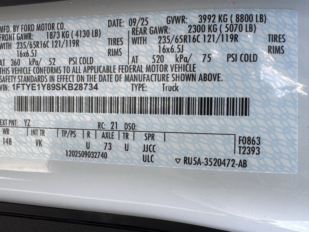 Oxford White 2025 Ford Transit-150 3.5L V6 Flex Fuel 10-Speed Automatic with OverdriveWell equipped with: Load Area Protection Package (Front & Rear Vinyl Floor Covering), Order Code 101A, 3.73 Axle Ratio, 4 Speakers, 4-Wheel Disc Brakes, ABS brakes, Air Conditioning, AM/FM radio, AM/FM Stereo, Auto High-beam Headlights, Brake assist, Dark Palazzo Gray Vinyl Bucket Seats, Delay-off headlights, Driver door bin, Driver's Seat Mounted Armrest, Dual front impact airbags, Dual front side impact airbags, Electronic Stability Control, Exterior Parking Camera Rear, Front anti-roll bar, Front Bucket Seats, Front License Plate Bracket, Front reading lights, Front wheel independent suspension, Fully automatic headlights, Illuminated entry, Low tire pressure warning, Occupant sensing airbag, Overhead airbag, Panic alarm, Passenger cancellable airbag, Passenger door bin, Passenger-Side B-Pillar Assist Handle, Power door mirrors, Power steering, Power windows, Remote keyless entry, Short-Arm Manual-Folding Power Adjust Mirrors, Speed control, Steering wheel mounted audio controls, Tachometer, Telescoping steering wheel, Tilt steering wheel, Traction control, Variably intermittent wipers, Vinyl Front Bucket Seats, and Wheels: 16 Silver Steel w/Black Hubcap.3 YEARS OF FREE MAINTENANCE INCLUDED AT OUR DEALERSHIP. 3 DAY EXCHANGE POLICY. 5 DAY BEST VALUE GUARANTEE. NITROGEN FILL AND EXTERIOR PAINT AND INTERIOR PROTECTION INCLUDED. 2 LOCATIONS WITHIN 5 MILES AND OVER 300 USED AND 200 NEW VEHICLES TO SERVE YOU BETTER! GREAT PRICES AND TONS OF CLEAN TRADE INS. OWNED AND OPERATED BY THE STEARNS FAMILY FOR OVER 50 YEARS. WE LOOK FORWARD TO SEEING YOU!!