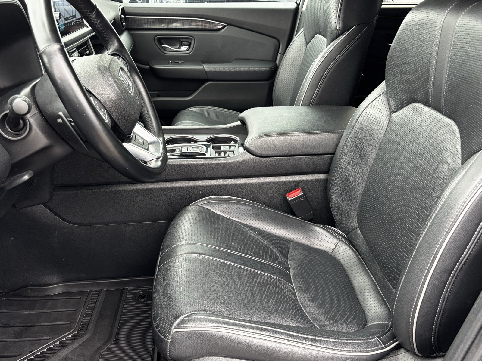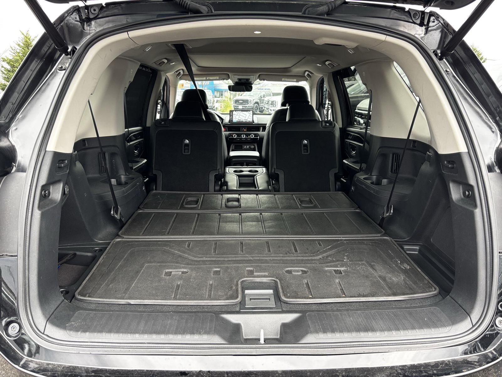 2025 Honda Pilot Elite Pilot Elite, 4D Sport Utility, 3.5L V6 DOHC 24V, 10-Speed Automatic, AWD, Black, Black Leather, Honda Satellite-Linked Navigation System, Navigation system: Honda Satellite-Linked Navigation System, 12 Speakers, 3rd row seats: split-bench, 4-Wheel Disc Brakes, 4.167 Axle Ratio, ABS brakes, Adaptive Cruise Control: Adaptive Cruise Control (ACC) with Low-Speed Follow, Air Conditioning, Alloy wheels, AM/FM radio: SiriusXM, Apple CarPlay/Android Auto, Auto High-beam Headlights, Auto-dimming door mirrors, Auto-dimming Rear-View mirror, Automatic temperature control, Blind Spot Information (BSI) System warning, Bose Premium Sound System, Brake assist, Bumpers: body-color, Compass, Cruise Control, Delay-off headlights, Driver door bin, Driver vanity mirror, Dual front impact airbags, Dual front side impact airbags, Electronic Stability Control, Emergency communication system: HondaLink, Four wheel independent suspension, Front anti-roll bar, Front Bucket Seats, Front Center Armrest, Front dual zone A/C, Front fog lights, Front reading lights, Fully automatic headlights, Garage door transmitter: HomeLink, Heads-Up Display, Heated and Cooled Seats, Heated and Ventilated Front Bucket Seats, Heated door mirrors, Heated rear seats, Heated steering wheel, HondaLink Subscription Services, Illuminated entry, Knee airbag, Lane departure: Lane Keeping Assist System (LKAS) active, Low tire pressure warning, Memory seat, Occupant sensing airbag, Outside temperature display, Overhead airbag, Overhead console, Panic alarm, Passenger door bin, Passenger vanity mirror, Perforated Leather Seat Trim, Power door mirrors, Power driver seat, Power Liftgate, Power moonroof, Power passenger seat, Power steering, Power windows, Radio data system, Rain sensing wipers, Rear air conditioning, Rear anti-roll bar, Rear reading lights, Rear seat center armrest, Rear window defroster, Rear window wiper, Rearview Camera, Reclining 3rd row seat, Remote keyless entry, Security system, SiriusXM, Speed-sensing steering, Speed-Sensitive Wipers, Split folding rear seat, Spoiler, Steering wheel mounted audio controls, Tachometer, Telescoping steering wheel, Tilt steering wheel, Traction control, Trip computer, Turn signal indicator mirrors, Variably intermittent wipers, Ventilated front seats, Wheels: 20 Shark Gray Machine Face with Black Lug Nuts, (Must finance with Ford Motor Credit to receive online pricing - see dealer for details.) Proudly, Pilot Elite, 4D Sport Utility, 3.5L V6 DOHC 24V, 10-Speed Automatic, AWD, Black, Black Leather, Honda Satellite-Linked Navigation System, Navigation system: Honda Satellite-Linked Navigation System. Black 10-Speed Automatic CARFAX One-Owner.