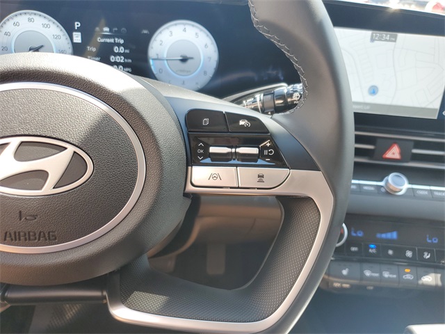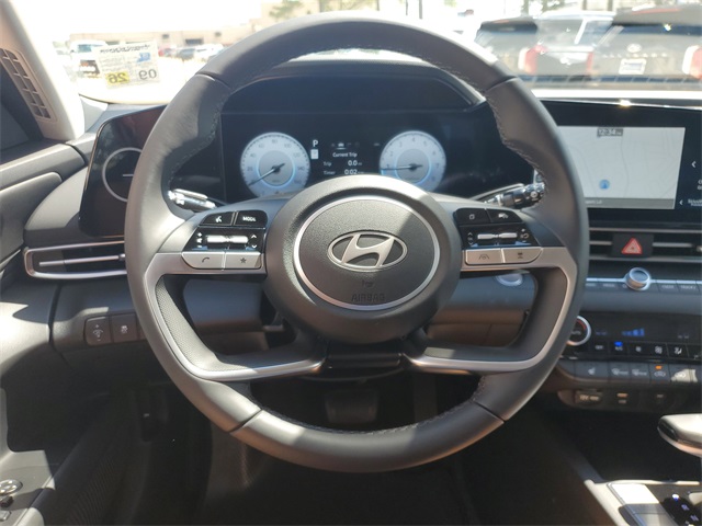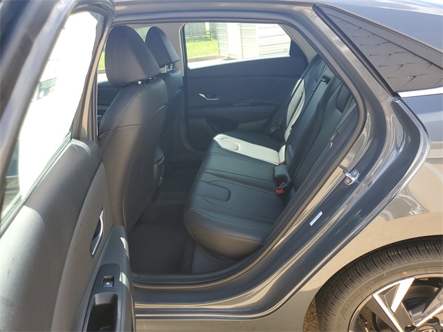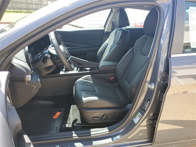 Ecotronic Gray 2025 Hyundai Elantra Limited FWD CVT I430/39 City/Highway MPGOption Group 01, 17 x 7.0J Alloy Wheels, 4-Wheel Disc Brakes, 8 Speakers, ABS brakes, Air Conditioning, Alloy wheels, AM/FM radio: SiriusXM, Apple CarPlay & Android Auto, Auto High-beam Headlights, Auto-dimming Rear-View mirror, Automatic temperature control, Brake assist, Bumpers: body-color, Cargo Side Bins, Carpeted Floor Mats, Delay-off headlights, Driver door bin, Driver vanity mirror, Dual front impact airbags, Dual front side impact airbags, Electronic Stability Control, Emergency communication system: Bluelink+, First Aid Kit, Front anti-roll bar, Front Bucket Seats, Front Center Armrest, Front dual zone A/C, Front reading lights, Front wheel independent suspension, Fully automatic headlights, H-Tex Leatherette Seats, Heated door mirrors, Heated Front Bucket Seats, Heated front seats, Illuminated entry, Leather steering wheel, Low tire pressure warning, Navigation System, Occupant sensing airbag, Outside temperature display, Overhead airbag, Overhead console, Panic alarm, Passenger door bin, Passenger vanity mirror, Power door mirrors, Power driver seat, Power moonroof, Power steering, Power windows, Radio: AM/FM/HD/SiriusXM Display Audio, Rear seat center armrest, Rear side impact airbag, Rear window defroster, Remote keyless entry, Reversible Cargo Tray, Roadside Assistance Kit, Security system, Severe Weather Kit, Speed control, Speed-sensing steering, Split folding rear seat, Steering wheel mounted audio controls, Tachometer, Telescoping steering wheel, Tilt steering wheel, Traction control, Trip computer, Turn signal indicator mirrors, and Variably intermittent wipers.