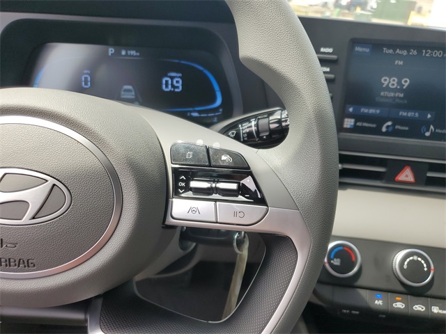 Ultimate Red 2025 Hyundai Elantra SE FWD CVT I432/41 City/Highway MPGOption Group 01, 15 x 6.0J Alloy Wheels, 4-Wheel Disc Brakes, 6 Speakers, ABS brakes, Air Conditioning, Alloy wheels, AM/FM radio, Apple CarPlay & Android Auto, Auto High-beam Headlights, Brake assist, Bumpers: body-color, Delay-off headlights, Driver door bin, Driver vanity mirror, Dual front impact airbags, Dual front side impact airbags, Electronic Stability Control, Exterior Parking Camera Rear, Front anti-roll bar, Front Bucket Seats, Front Center Armrest, Front reading lights, Front wheel independent suspension, Fully automatic headlights, Illuminated entry, Low tire pressure warning, Occupant sensing airbag, Outside temperature display, Overhead airbag, Overhead console, Panic alarm, Passenger door bin, Passenger vanity mirror, Power door mirrors, Power steering, Power windows, Premium Cloth Seat Trim, Radio: AM/FM/HD Display Audio, Rear side impact airbag, Rear window defroster, Remote keyless entry, Security system, Speed control, Speed-sensing steering, Steering wheel mounted audio controls, Tachometer, Telescoping steering wheel, Tilt steering wheel, Traction control, Trip computer, and Variably intermittent wipers.
