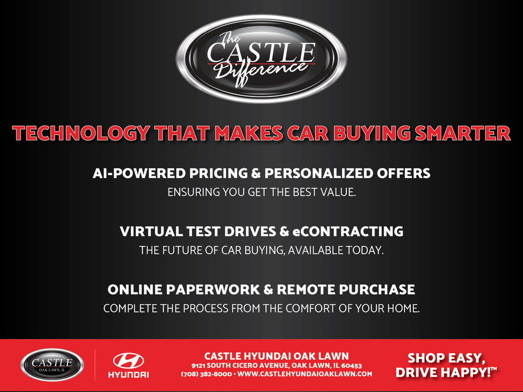 Discover the exceptional 2025 Hyundai Elantra SEL Convenience, a vehicle that seamlessly blends style, technology, and performance. With its sleek gray exterior and a host of premium features, this Elantra is poised to elevate your driving experience.Standout features include: Navigation System Radio: AM/FM/HD/SiriusXM Display Audio Power moonroof Exterior Parking Camera Rear Apple CarPlay & Android Auto 17 x 7.0J Alloy WheelsBeyond the impressive list of amenities, this Elantra offers exceptional efficiency, boasting an impressive 30 city/39 highway MPG. The I4 engine and CVT transmission deliver a smooth, responsive ride, ensuring you'll enjoy every mile.Safety is paramount, and the Elantra delivers with a suite of advanced driver-assistance technologies, including ABS brakes, Electronic Stability Control, and an Emergency Communication System. You can drive with confidence, knowing you and your passengers are well-protected.The premium cabin features heated front seats, a leather-wrapped steering wheel, and dual-zone automatic climate control, creating a refined and comfortable environment. The split-folding rear seat and ample cargo space ensure you can easily accommodate your lifestyle needs.This Elantra SEL Convenience is a true standout in its class, offering a compelling blend of style, technology, and practicality. Experience the difference for yourself and schedule a test drive today. We're confident you'll be impressed by this exceptional Hyundai.Welcome to Castle Hyundai Oak Lawn, your trusted Hyundai dealership in Oak Lawn, IL, serving Oak Lawn, Burbank, Evergreen Park, Chicago Ridge, and nearby suburbs. Shop the full lineup of new Hyundai vehicles, including the Venue, Tucson, Santa Fe, Palisade, Elantra, and Sonata. Check out our eco-friendly options like the Tucson Hybrid, Santa Fe Hybrid, Palisade Hybrid, and electric vehicles IONIQ 5 and IONIQ 9, combining efficiency with advanced technology. At Castle Hyundai Oak Lawn, we offer competitive pricing, flexible financing, and a friendly sales team ready to help you find the perfect Hyundai. Browse our new Hyundai inventory online or visit our Oak Lawn showroom. Call us at 708-357-1978. Price does not include tax, title, and a doc fee of $367.70.