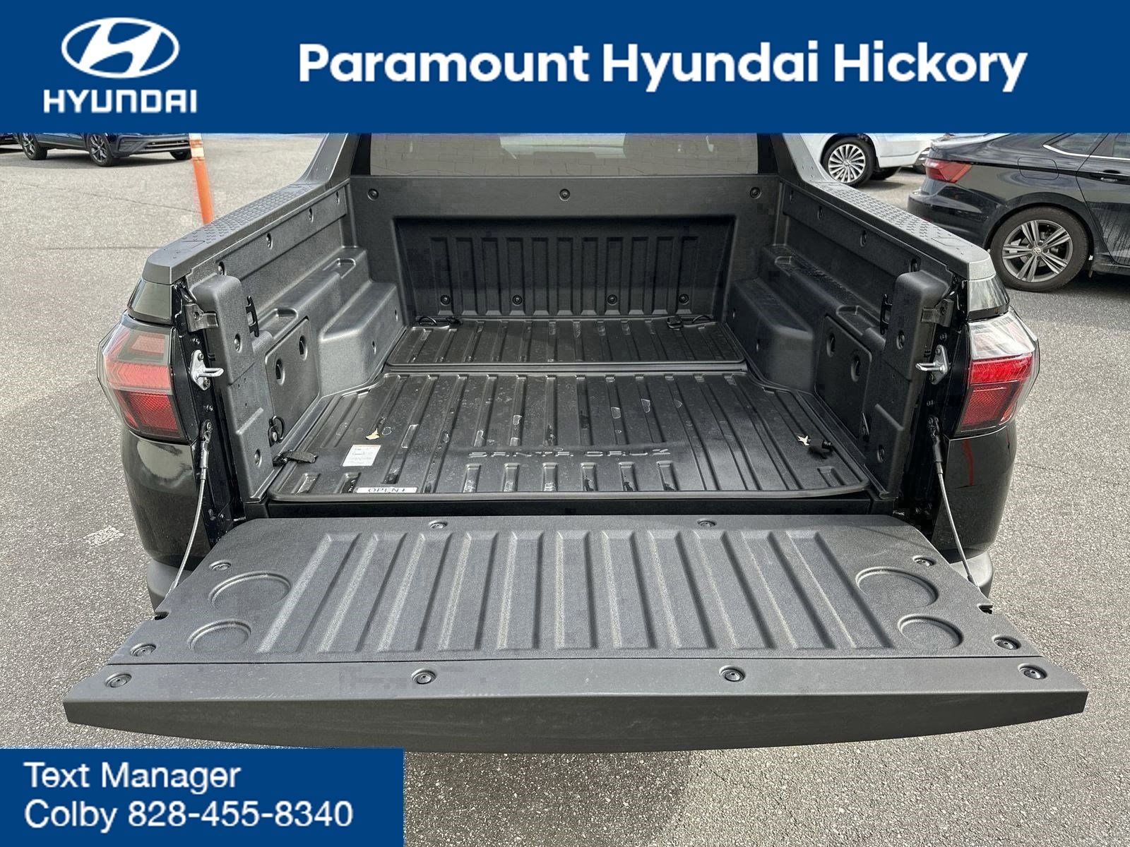 2025 Check out all these great options Option Group 01, 18 x 7.5J Alloy Wheels, 4-Wheel Disc Brakes, 4.081 Axle Ratio, 6 Speakers, ABS brakes, Air Conditioning, All Season Fitted Liners, Alloy wheels, Alloy wheels, AM/FM radio: SiriusXM, Apple CarPlay & Android Auto, Auto High-beam Headlights, Auto-leveling suspension, Automatic temperature control, Bed Mat, Brake assist, Bumpers: body-color, Cargo Net, Compass, Delay-off headlights, Driver door bin, Driver vanity mirror, Dual front impact airbags, Dual front side impact airbags, Electronic Stability Control, Emergency communication system: Bluelink+, Exterior Parking Camera Rear, First Aid Kit, Four wheel independent suspension, Front anti-roll bar, Front Bucket Seats, Front Center Armrest, Front dual zone A/C, Front reading lights, Fully automatic headlights, H-Tex Leatherette Seat Trim, Heated door mirrors, Heated Front Bucket Seats, Heated front seats, Illuminated entry, Low tire pressure warning, Mud Guards, Occupant sensing airbag, Outside temperature display, Overhead airbag, Overhead console, Panic alarm, Passenger door bin, Passenger vanity mirror, Power door mirrors, Power driver seat, Power steering, Power windows, Radio data system, Radio: AM/FM/HD Audio System, Rear anti-roll bar, Rear reading lights, Rear seat center armrest, Rear side impact airbag, Rear step bumper, Rear window defroster, Remote keyless entry, Security system, Speed control, Split folding rear seat, Spoiler, Steering wheel mounted audio controls, Tachometer, Telescoping steering wheel, Tilt steering wheel, Traction control, Trip computer, Turn signal indicator mirrors, and Variably intermittent wipers.Hyundai Santa Cruz SEL AWD 21/29 City/Highway MPG Price includes: $1000 - Sales Event Cash. Exp. 01/02/2026 $750 - Hyundai HMF Dealer Choice : $750 discount and 5.49% APR for 24 months. $44.09 per $1000 financed. Available to well qualified buyers who finance through Hyundai Motor Finance. H704. Exp. 01/02/2026